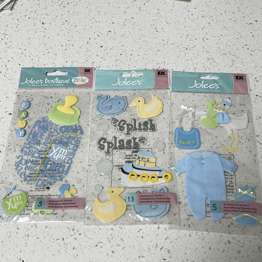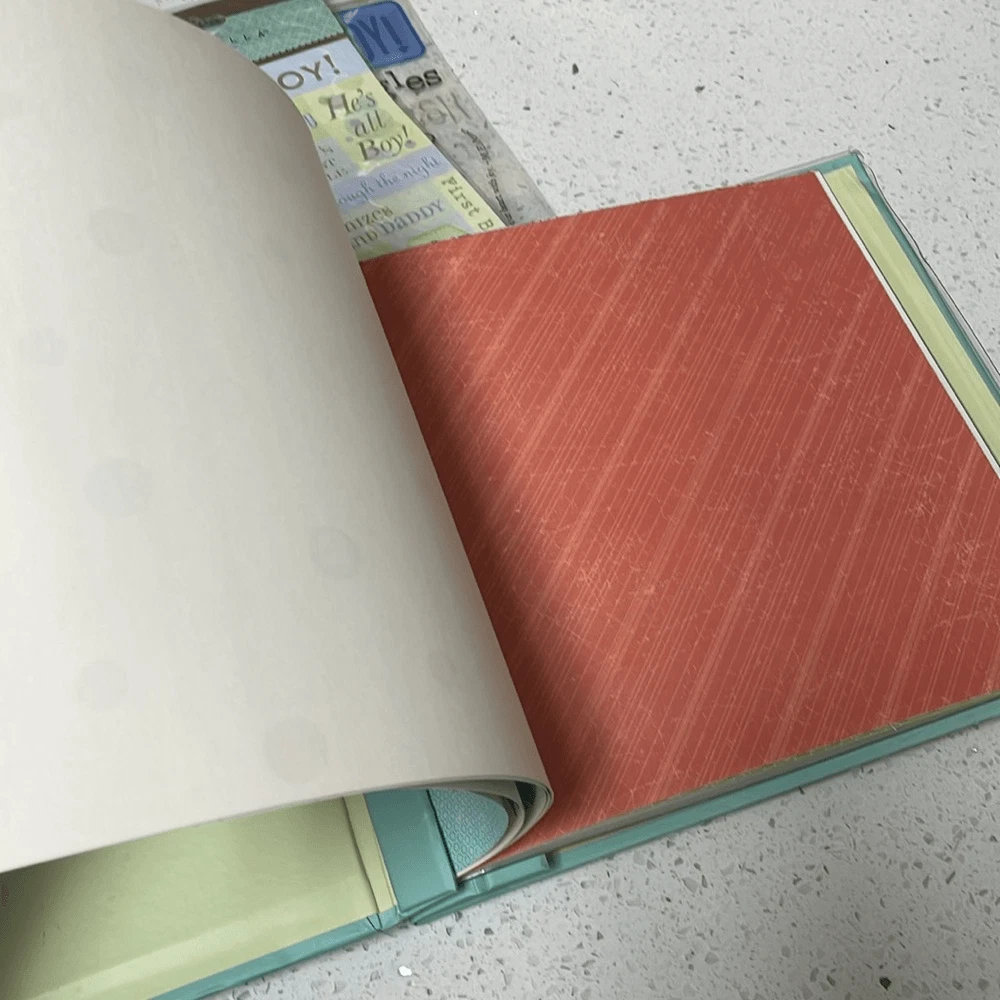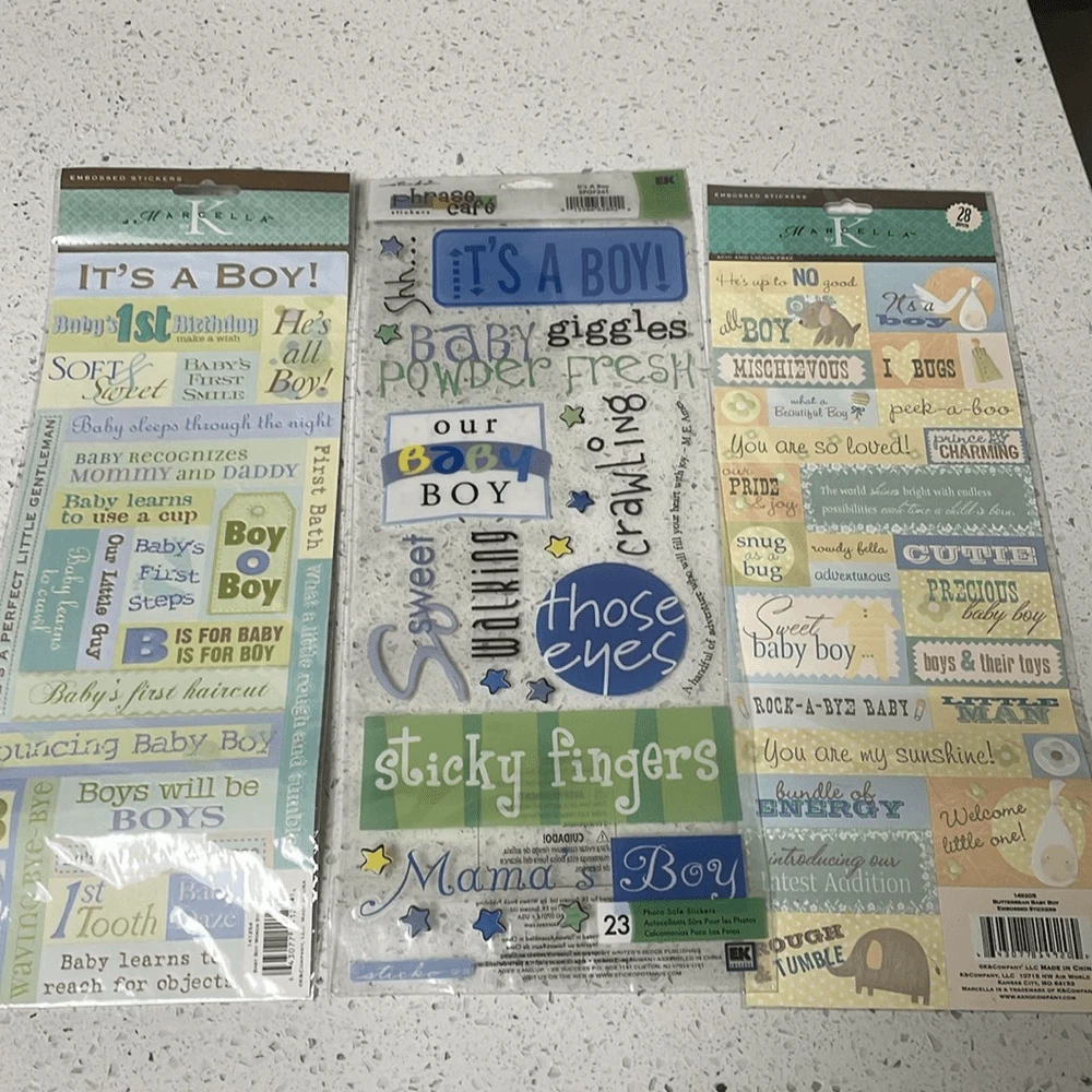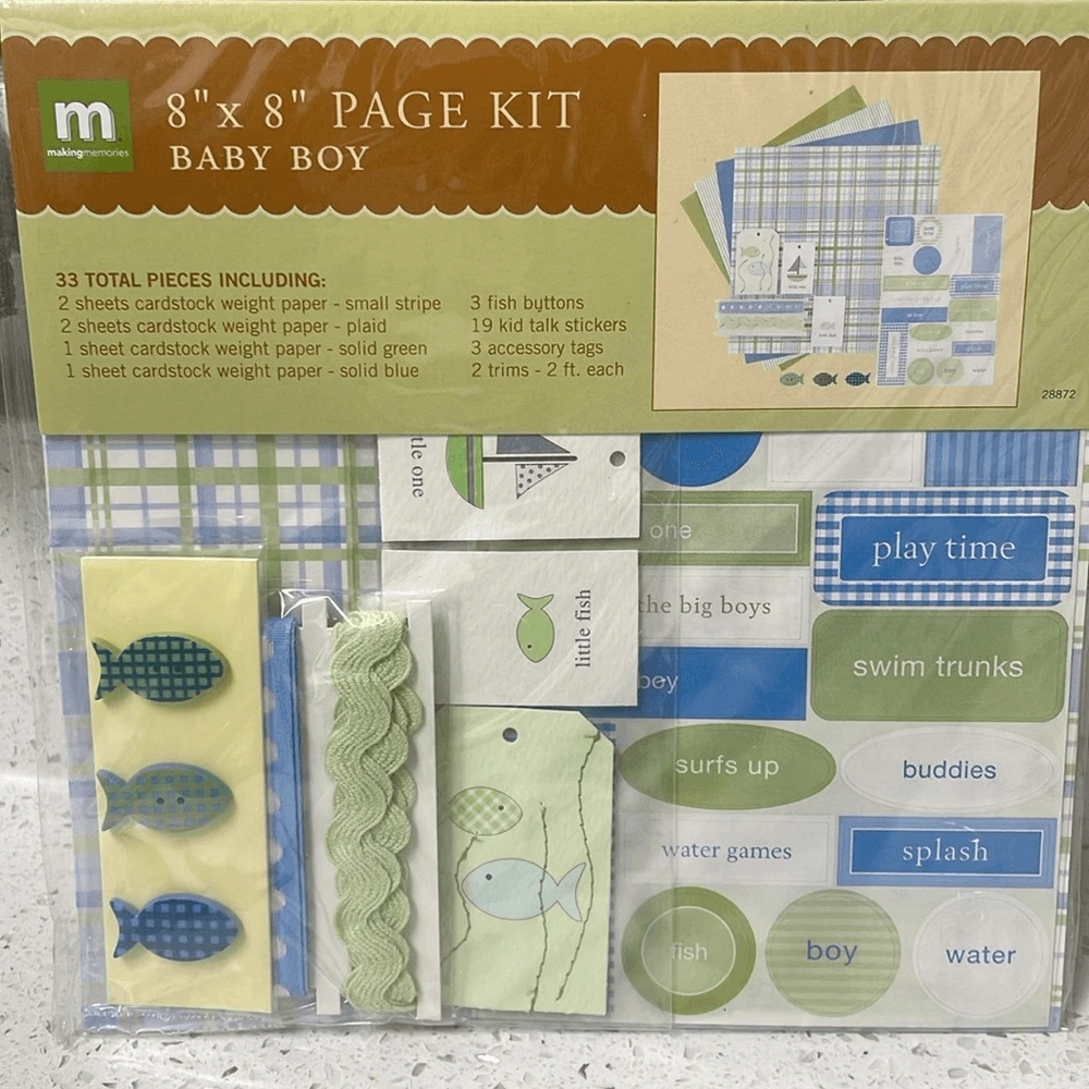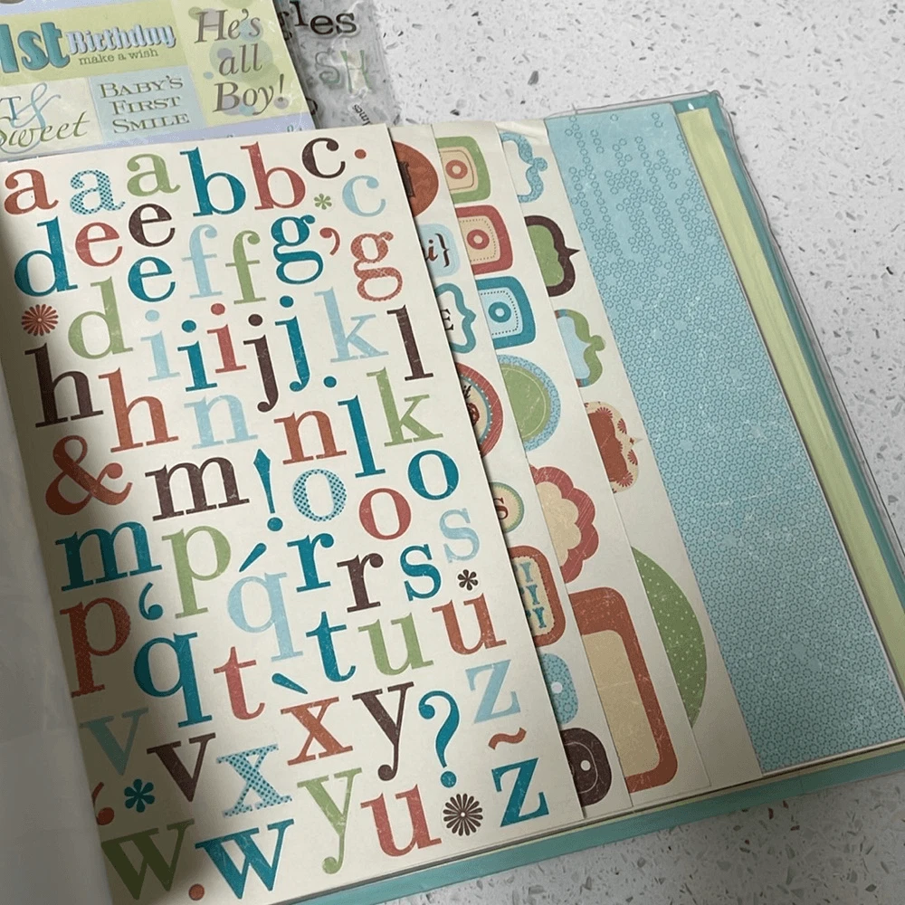 Scrapbook kit/book and supplies for new baby boy! 6 sheets of stickers 8x8 page kit Brand new Blue/green