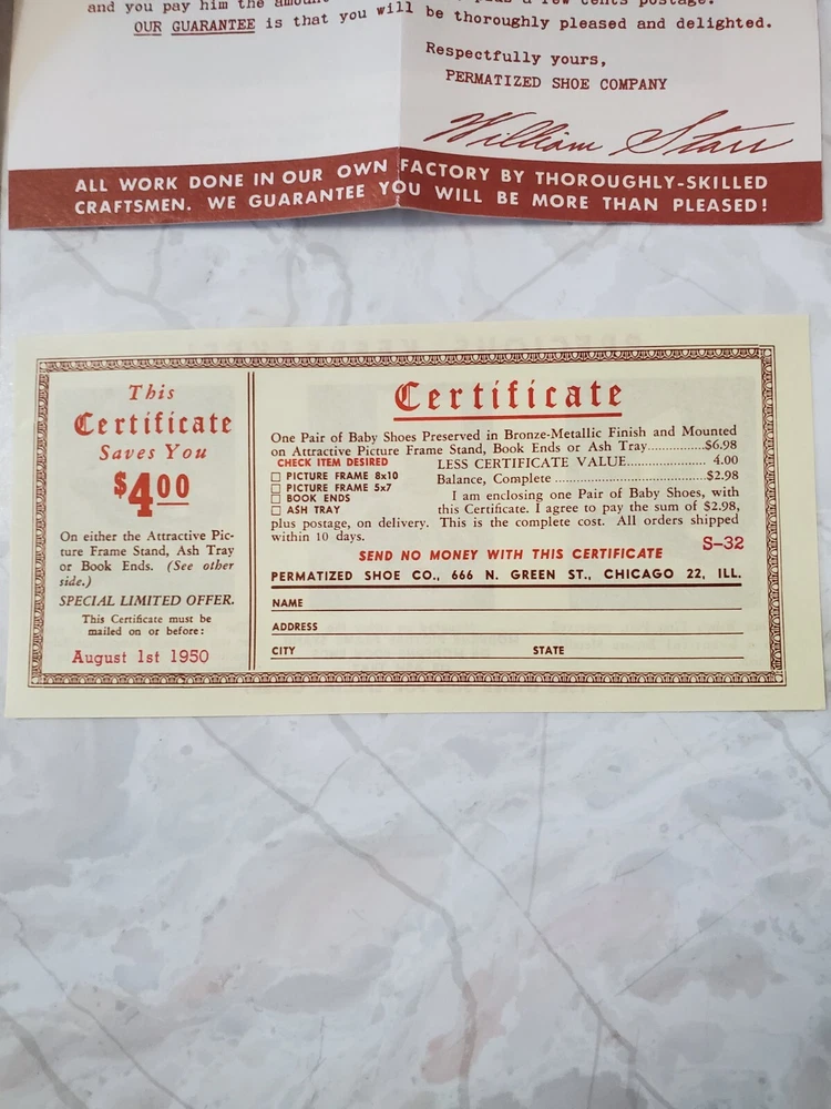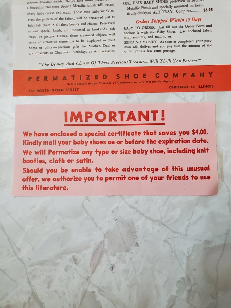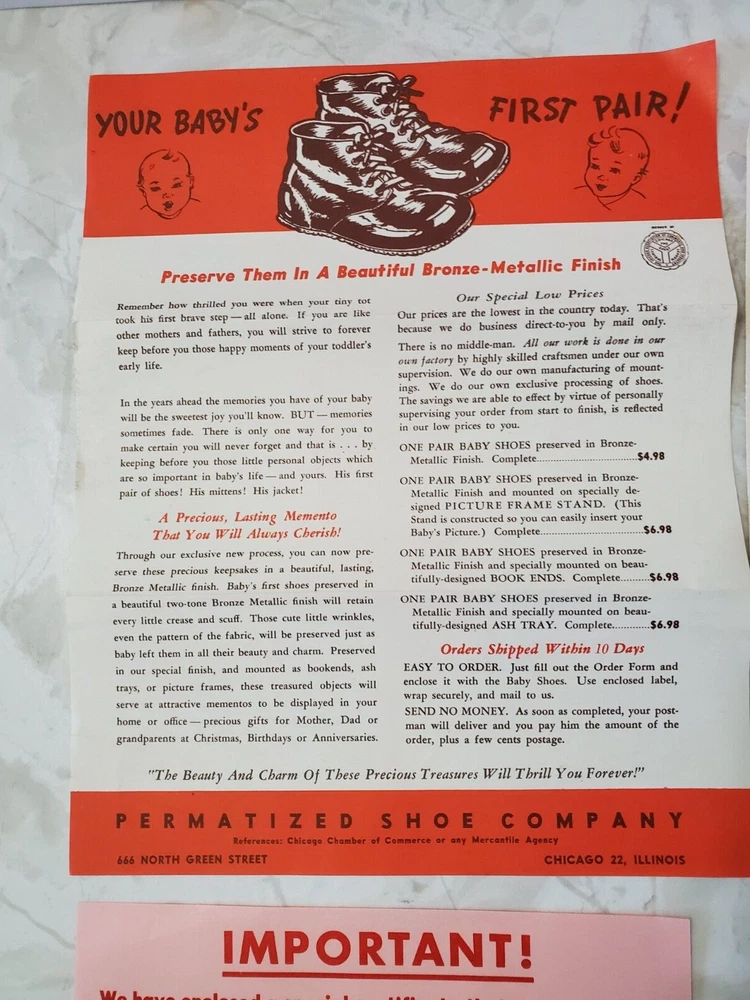 Baby Care Brochure Bronze Baby Shoes Ad Coupon Permatized Shoe Co Chicago Il