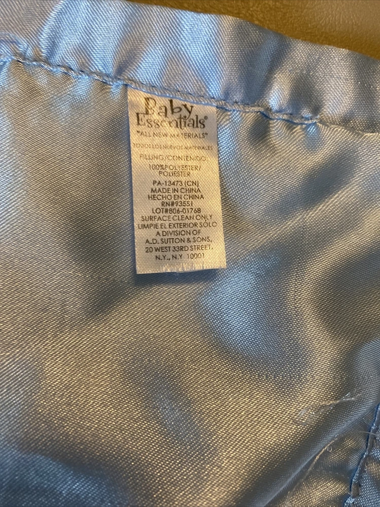 Seller Notes:“No stains or holes...a few pulls on the back satin...overall very good”Model:Baby Essentials LoveyMaterial:PolyesterGender:Boysgtin13:Does not applyUPC:Does not applyType:Security BlanketTheme:Dogs & PuppiesBrand:Baby EssentialsColor:BlueFeatures:Easy CareSize:14"