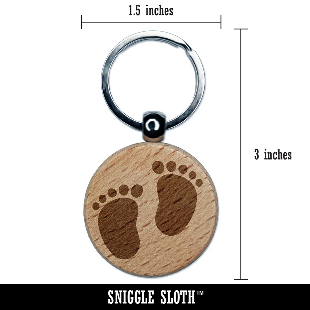 Baby Footprints Engraved Wood Round Keychain Tag Charm