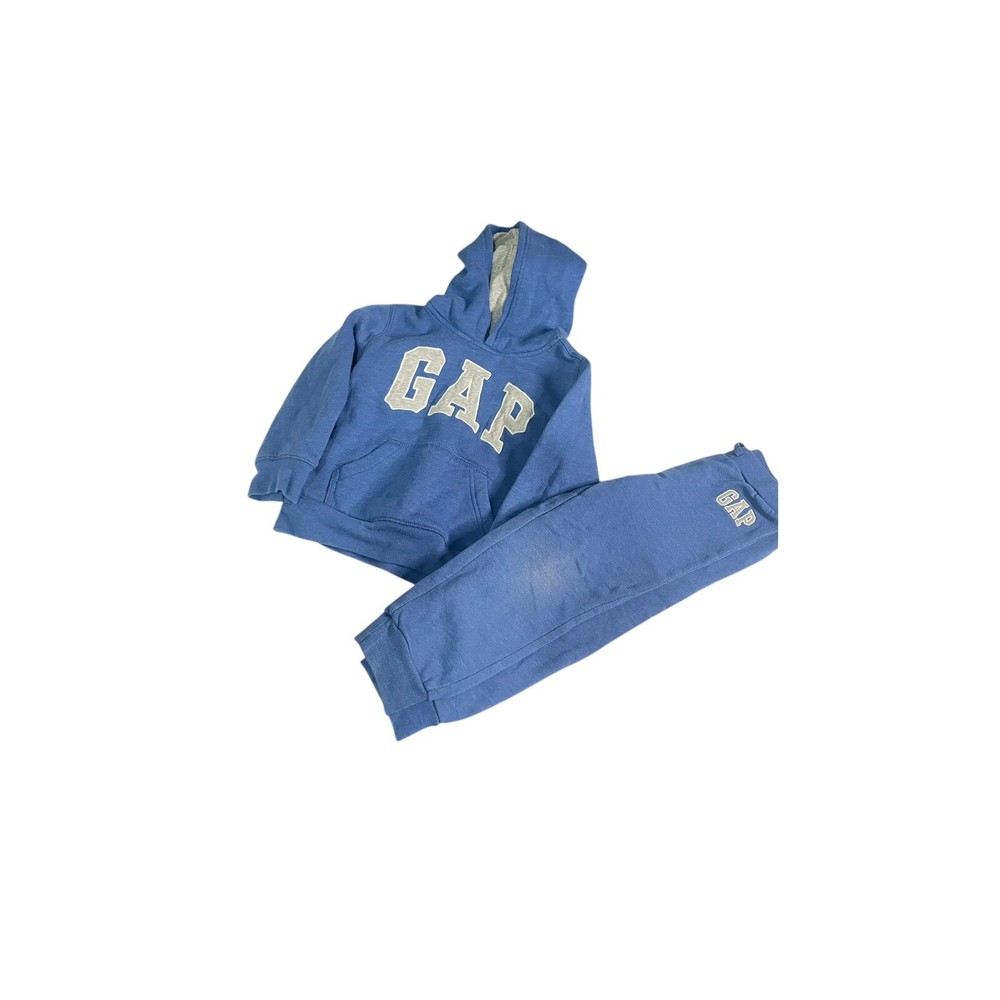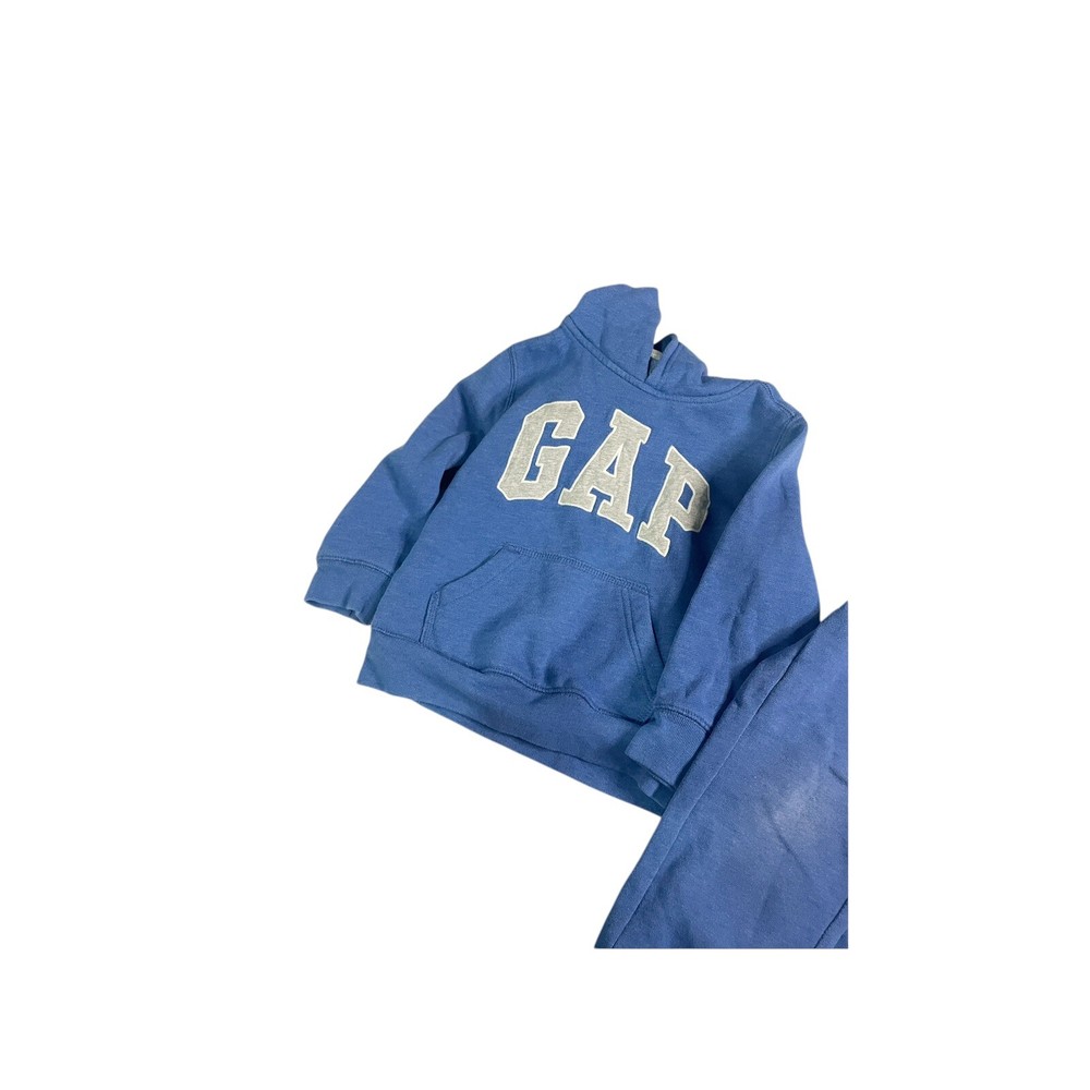 This adorable Baby Gap set is a must-have for little boys—soft, cozy cotton makes it super comfy while the stylish blue logo sweatshirt and matching track pants keep them looking sharp. Perfect for playtime or outings, the relaxed fit allows easy movement, and the design is classic Gap quality. The slight wear on the pant leg gives it a pre-loved charm. Great value for a trendy, practical outfit!