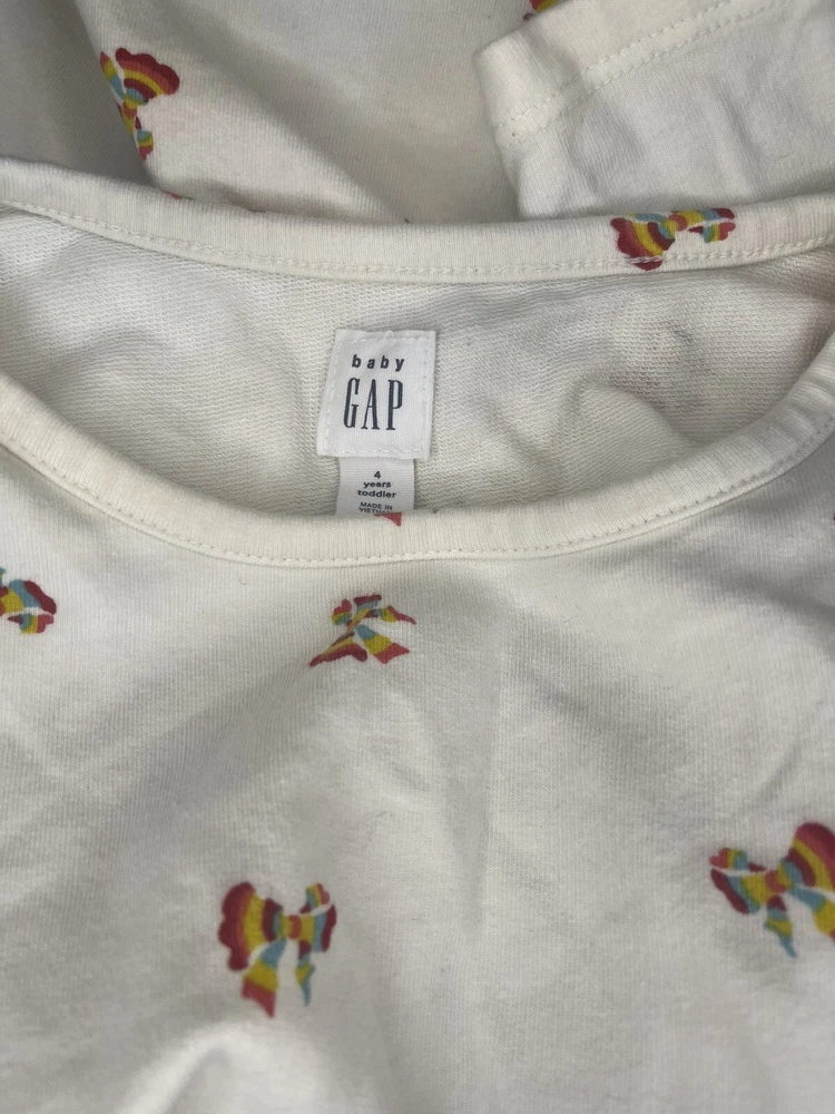 Department: Girls Dress Length: Knee Length Brand: Gap Color: White Theme: Colorful Accents: Bow Style: Fit & Flare Size: 4 Sleeve Length: Long Sleeve