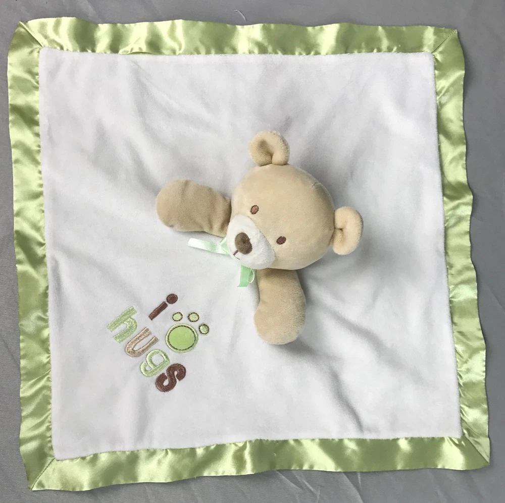 Baby Gear Tan Brown Bear White Green Satin Security Blanket I Paw Print Hugs