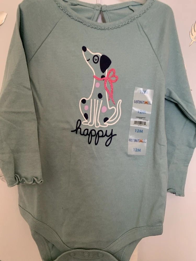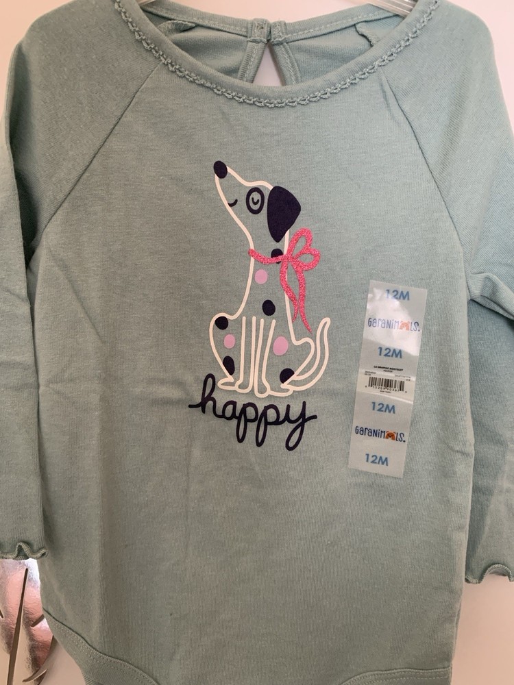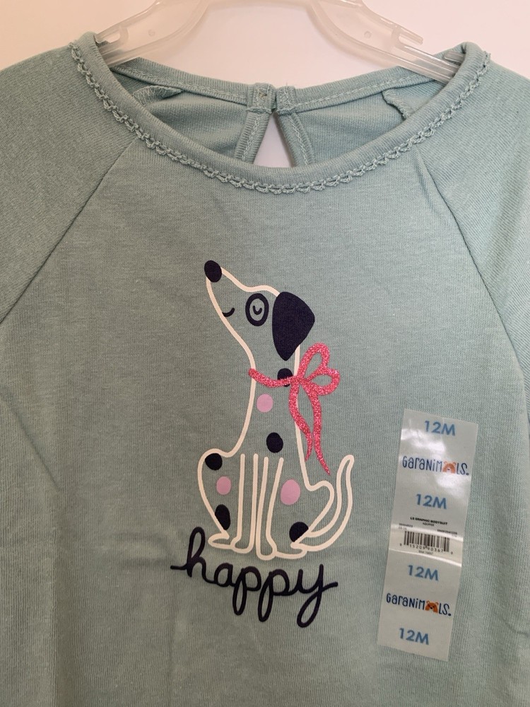 The Baby Girl 2pc Top & Pants Leggings Set in size 12 months is a lovely outfit perfect for both party and casual occasions. The solid teal and cream color with a happy puppy character adds a fun and playful touch to the set. Made from comfortable polyester blended fabric, this easy-care outfit is suitable for all seasons and features long sleeves for warmth during the winter season. The pull-on closure and machine washable design make it a convenient and practical choice for parents looking for a stylish and cozy ensemble for their little one.