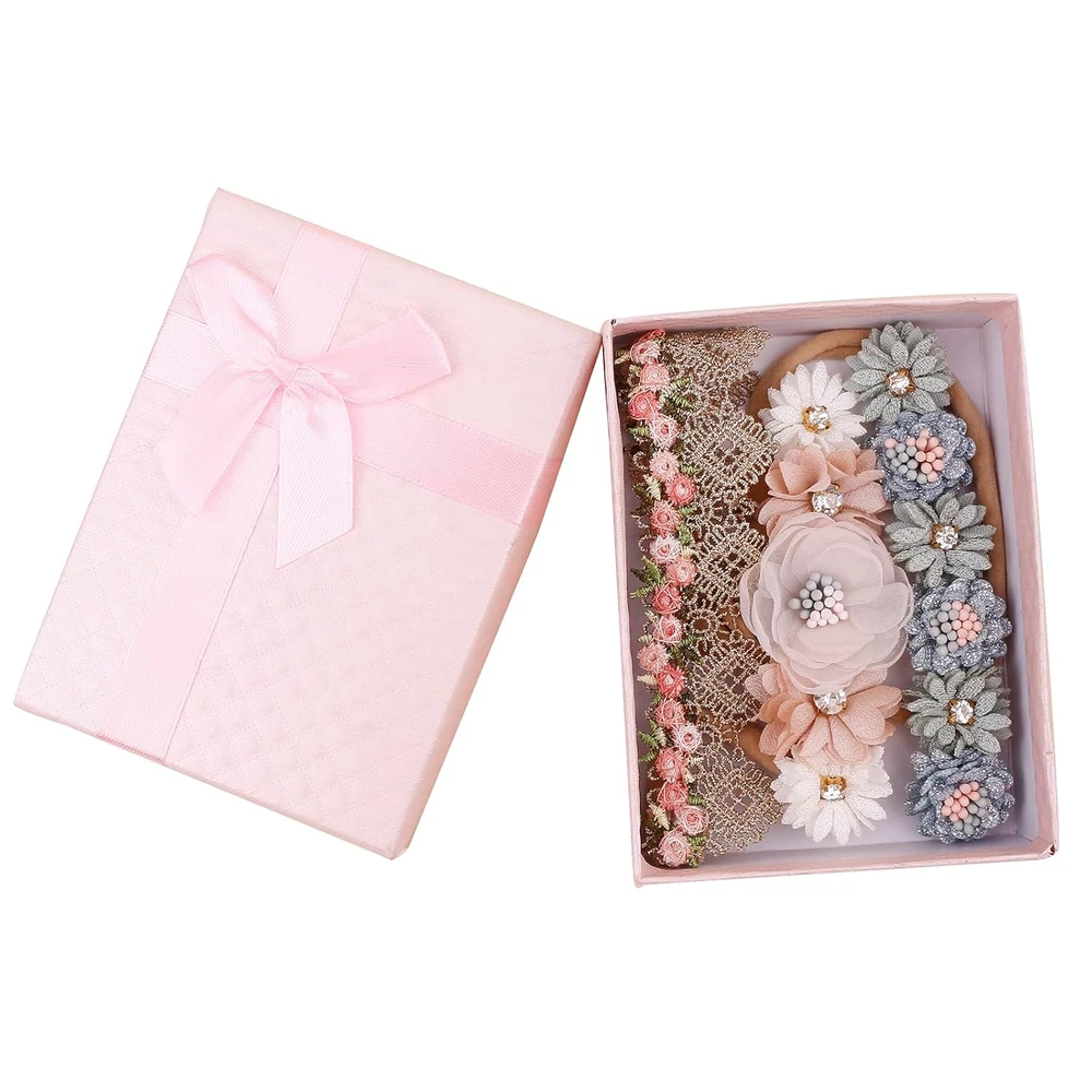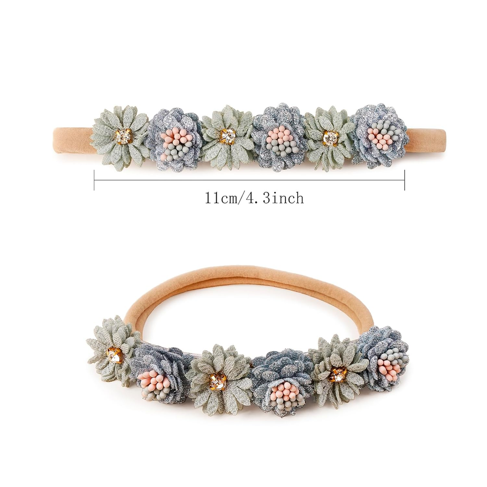 ❀SOFT MATERIAL-- Headbands for baby girls come with fabric leaves and flowers with rhinestones or pearl, nylon elastic band, all materials are 100% skin friendly. ❀ADJUSTABLE SIZE--Baby girl headbands can easily stretchable 14-22 inches in circumference, recommended age 1-12 years old. ❀DESIGN DETAIL--Floral headbands are designed with a back cotton pad and flexible nylon band to be soft, lightweight and comfortable, will not leave marks on the babies head, they are fit with any hair style. ❀PACKAGE INCLUDED-- Total 3pcs different styles elastic floral headbands for baby girls, 1 delicate and strong gift box to pack flower crown headbands set. ❀STYLE&OCCASION--Various styles, colors and patterns baby floral nylon crown are so gorgeous and adorable to match very well your little girls outfits; especially fit for baby shower, birthday party, newborn photography,wedding, Christmas, masquerade, festival show or carnival. Baby girls headband features array flowers in a beautiful setting placed on a skinny nylon headband that is so soft and stretchy and will adapt as your little princess grows. All material all materials are 100% skin friendly, and no harm to babies skin. Package Included: 3pcs flower nylon headband Please note: To ensure safety, do not leave headband on infant or child while sleeping or while unsupervised. Sometimes due to the influence of light and screen, the actual color of the object may be slightly different from that of the picture.