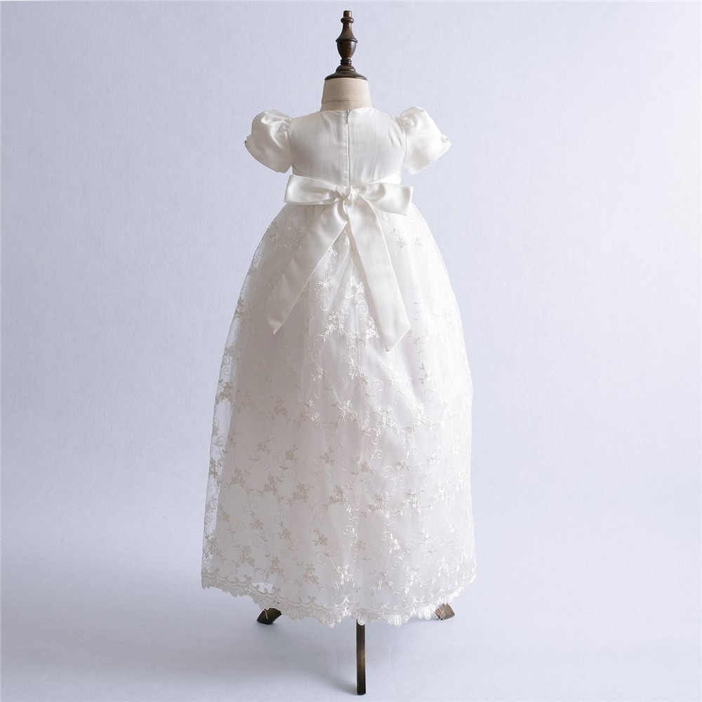 It's the beginning of a new spiritual life for your . Mark the occasion with of our superior quality girls' christening dresses. Each of our exquisitely detailed christening gowns and baptismal dresses is carefully crafted to become a family heirloom, destined to be shared by generations of cherished baby girls. Whatever her age, you'll find the most complete selection of baptism gowns for baby and infants, made with only the finest quality fabrics, in a choice of traditional, contemporary, or casual styles. The gowns features stunning embroidered floral lace dress with a floral lace cap sleeves adds to the contemporary of the design. An exquisite dress for her baptism or any special day. Made of high quality cotton in a gorgeous shade of ivory. Fully cotton lining for comfort fit. zipper in the back look pretty and make it easy to get baby in and out. Great for special occasion such as Dedication Sunday, First Communion, Christening, Baptism, wedding party, holiday party, birthday party, pageant, artistic photograph etc. 30℃ Hand Wash, Wash separately, No bleach, No tumble dry, Iron low temperature.