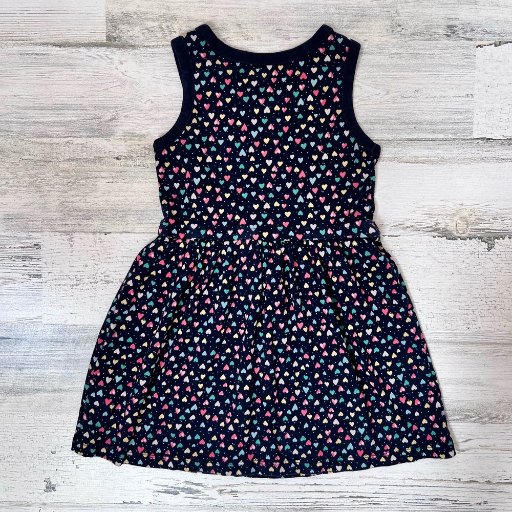 Baby Gap girls tank dress featuring a rainbow heart print on navy cotton. Elastic waist with a non-functional tie detail adds charm. Perfect for play, school, or everyday wear. Styling suggestion: Pair with sneakers or sandals in summer, or layer with a cardigan and tights in cooler months. • Brand: Baby Gap • Size: 3 (Toddler) • Color: Navy blue with multicolor heart print • Material: 100% Cotton • Style: Tank dress • Features: Elastic waist, tie detail (non-functional), pullover style • Neckline: Scoop neck • Sleeve: Sleeveless • Closure: Pullover • Fit: Regular • Pattern: Rainbow hearts • Occasion: Casual, play, everyday wear • Season: Spring, Summer, Fall (layered) • Condition: Very good used condition – minimal wear • Style aesthetics: playful, casual, colorful, soft, fun, versatile, cheerful, cute Ships fast! Clean, smoke-free, pet-friendly home. Bundle to save!
