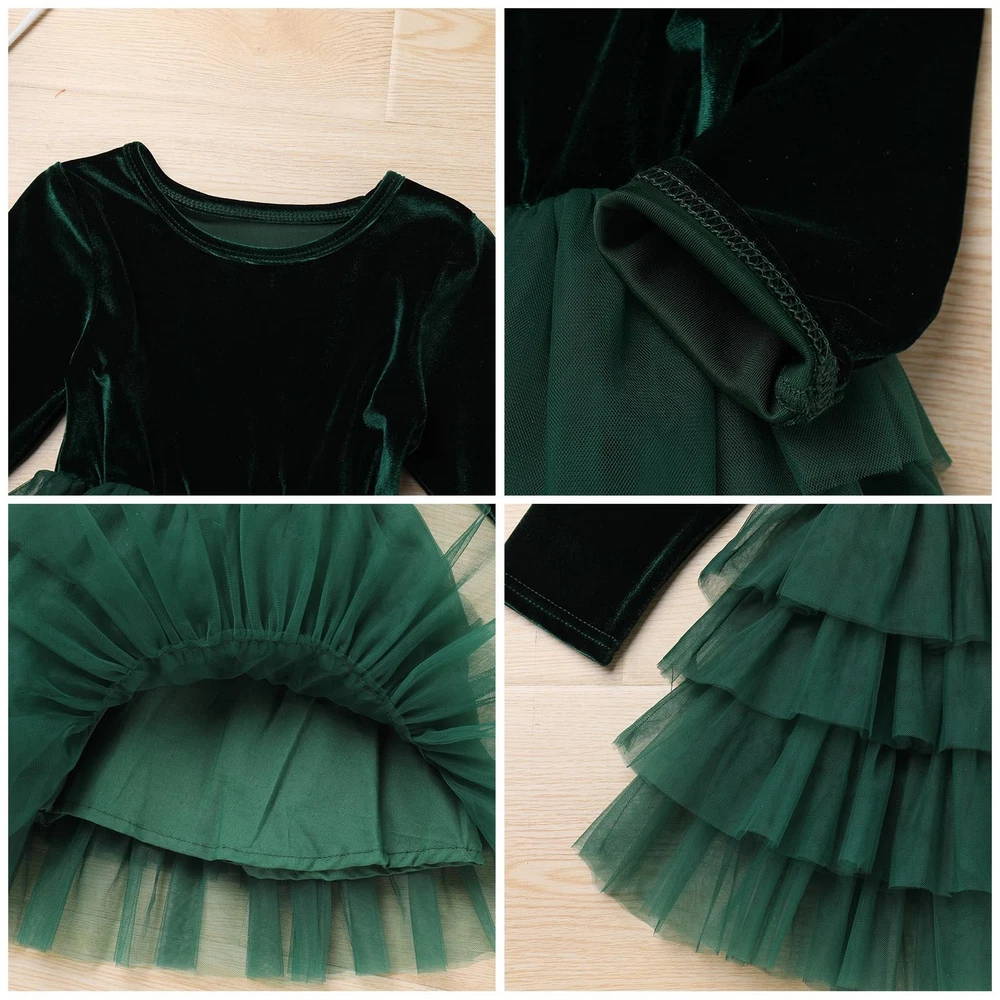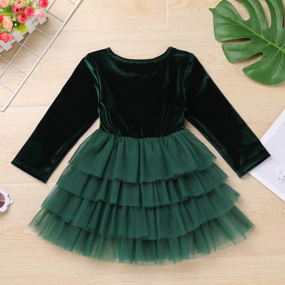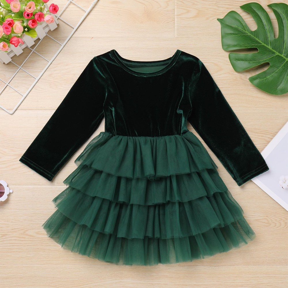 Girls Fall Winter Long Sleeve Velvet Tiered Tulle Tutu Dress Wedding Flower Girl Dress Condition: New with Tags Package Include: 1PC Dress Material: Velvet + Mesh Features: Long Sleeve, Round Neck, Elastic Waist, Solid Color, Tiered Tulle, Pullover Gender: Girls Size Chart: Please allow slight 1-3cm difference due to manual measurement and refer to the details to choose the suitable size. Tag No.80: Recommended Size for : 6-12 Months; Bust: 20.0" / 52cm; Sleeve: 11.0" / 28cm; Waist: 16.0"-23.0" / 40-58cm; Dress Length: 19.0" / 49cm; Tag No.90: Recommended Size for : 1-2 Years; Bust: 21.0" / 54cm; Sleeve: 12.0" / 31cm; Waist: 17.0"-24.0" / 42-60cm; Dress Length: 20.0" / 52cm; Tag No.100: Recommended Size for : 2-3 Years; Bust: 22.0" / 56cm; Sleeve: 13.0" / 34cm; Waist: 17.0"-24.0" / 44-62cm; Dress Length: 22.0" / 55cm; Tag No.110: Recommended Size for : 3-4 Years; Bust: 23.0" / 58cm; Sleeve: 15.0" / 37cm; Waist: 18.0"-25.0" / 46-64cm; Dress Length: 24.0" / 60cm; Tag No.120: Recommended Size for : 5-6 Years; Bust: 24.0" / 62cm; Sleeve: 16.0" / 40cm; Waist: 20.0"-27.0" / 50-68cm; Dress Length: 26.0" / 65cm; Tag No.130: Recommended Size for : 7-8 Years; Bust: 26.0" / 66cm; Sleeve: 17.0" / 43cm; Waist: 21.0"-28.0" / 54-72cm; Dress Length: 28.0" / 70cm; Friendly Tips: Photo color might be a little different from the actual product due to color display of different monitors. Care Instructions: Hand wash with cold water, no bleach or iron, do not tumble dry, professional dry clean recommended. Flower Girl Dress for Girls: Baby girl vlevet long sleeve flower girl dress little girl wedding birthday party formal christmas dress,baby girls velvet tulle tutu Christmas dress,velvet dress,girls fall dress,girls christmas dress,fall dress, baby fall winter velvet dresses,baby girls long sleeve ruffle christmas dress fall winter clothes. Premium Velvet Fabric: girls velvet long sleeve dress is made of premium fabric, the velvet material is ultra soft, comfortable and elastic to wear,offer a comfy and cozy wearing experience to your girl. The fall winter long sleeve velvet tiered tulle tutu dress wedding flower girl dress, gives your a sweetie a fashionable and unique feel in the daily life. Design: Long sleeve round neck velvet top bodice, tiered tulle tutu skirt, makes your girl extremely graceful and glamorous among the people. Classic long sleeve and round neck, suitable to wear in fall or winter. Totally 5 layers to make the full appearance, 4 layers tiered tulle and 1 layer breathable cotton lining, adds more fullness. Occasions: baby girl long sleeve velvet a-line party holiday dresses is for party, vacation, holiday, church, wedding , birthday party, prom, Christmas, family gathering, photo shoot, stage performance and other special occasions. Size Recommend: girl velvet long sleeve dress for Christmas vintage dress girls velvet tutu dress 6-9 months, holiday party dresses for girls 9-12 months, long sleeve ruffle princess party dress 12-18 months, little girl fall winter clothes 18-24months, girls solid velvet dresses 2-3T, 4-5T, 5-6 years old baby girls.