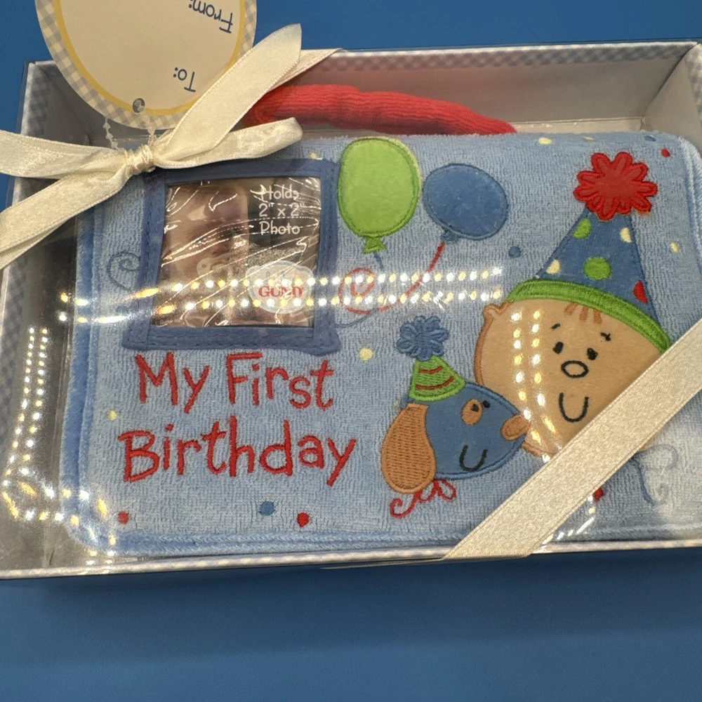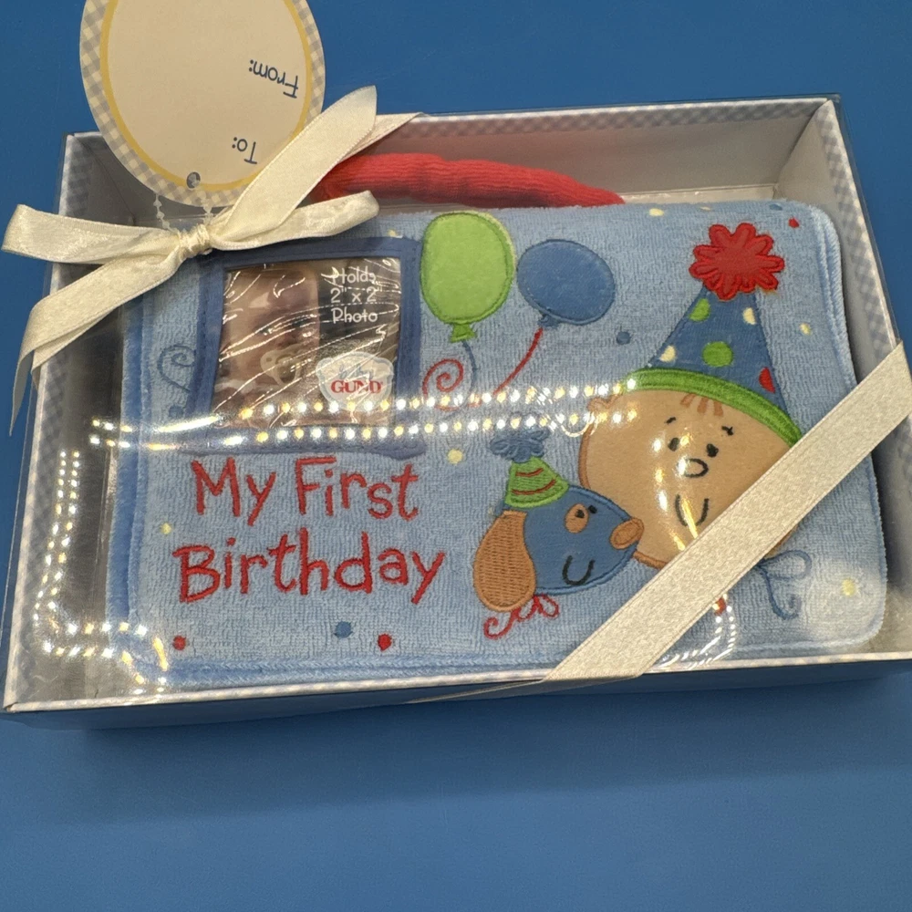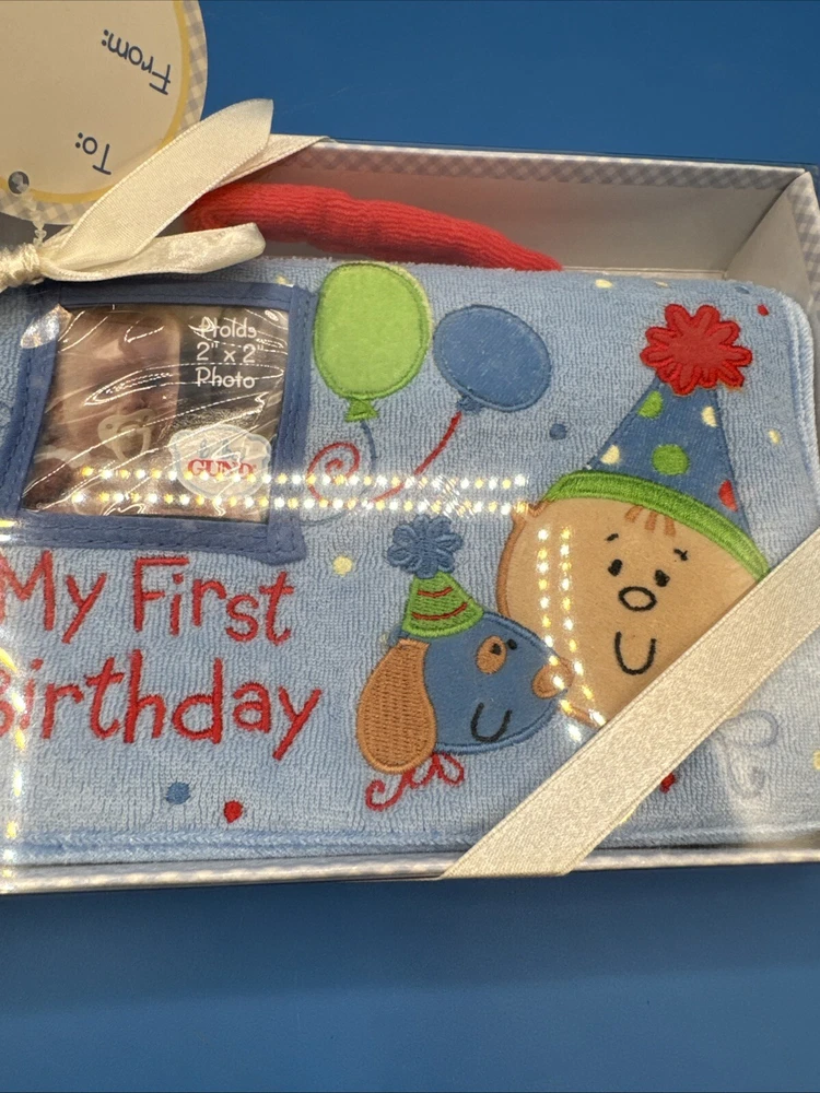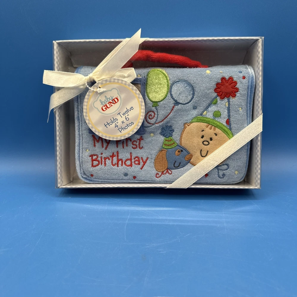 This is a Baby GUND My First Birthday Soft Photo Album designed for boys. It is a keepsake item for parents to store and display photos of their baby's first birthday. The album is specifically tailored for boys and features a soft design, making it a safe and adorable choice for preserving special memories. New in original box. Never been removed or used. Please check the pictures carefully as part of the description. Feel free to ask questions if you need more information before you buy it. Thank you for your interest B-11
