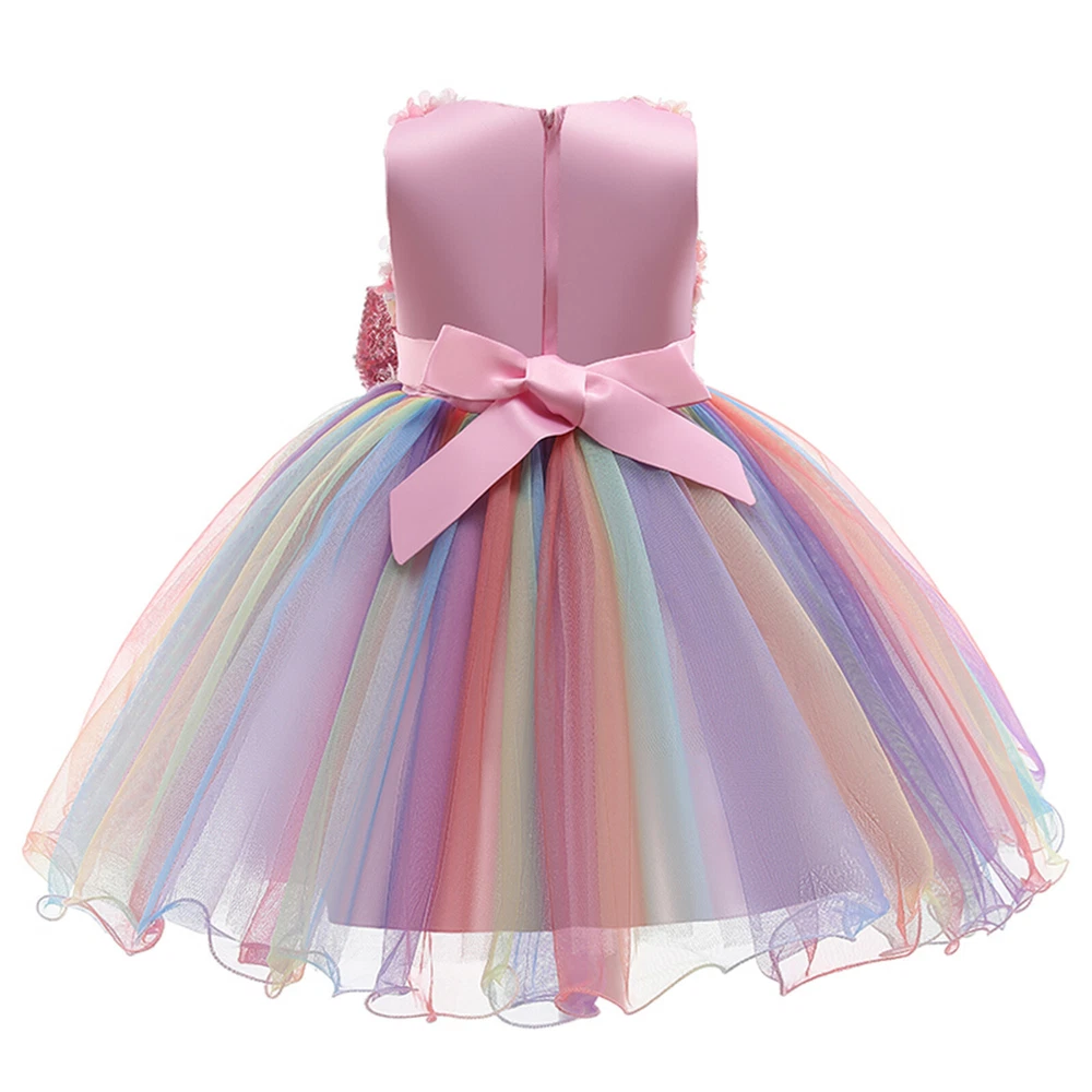 Baby Kids Girls Sleeveless Flower Sequin Bow Wedding Princess Party Tutu Dress