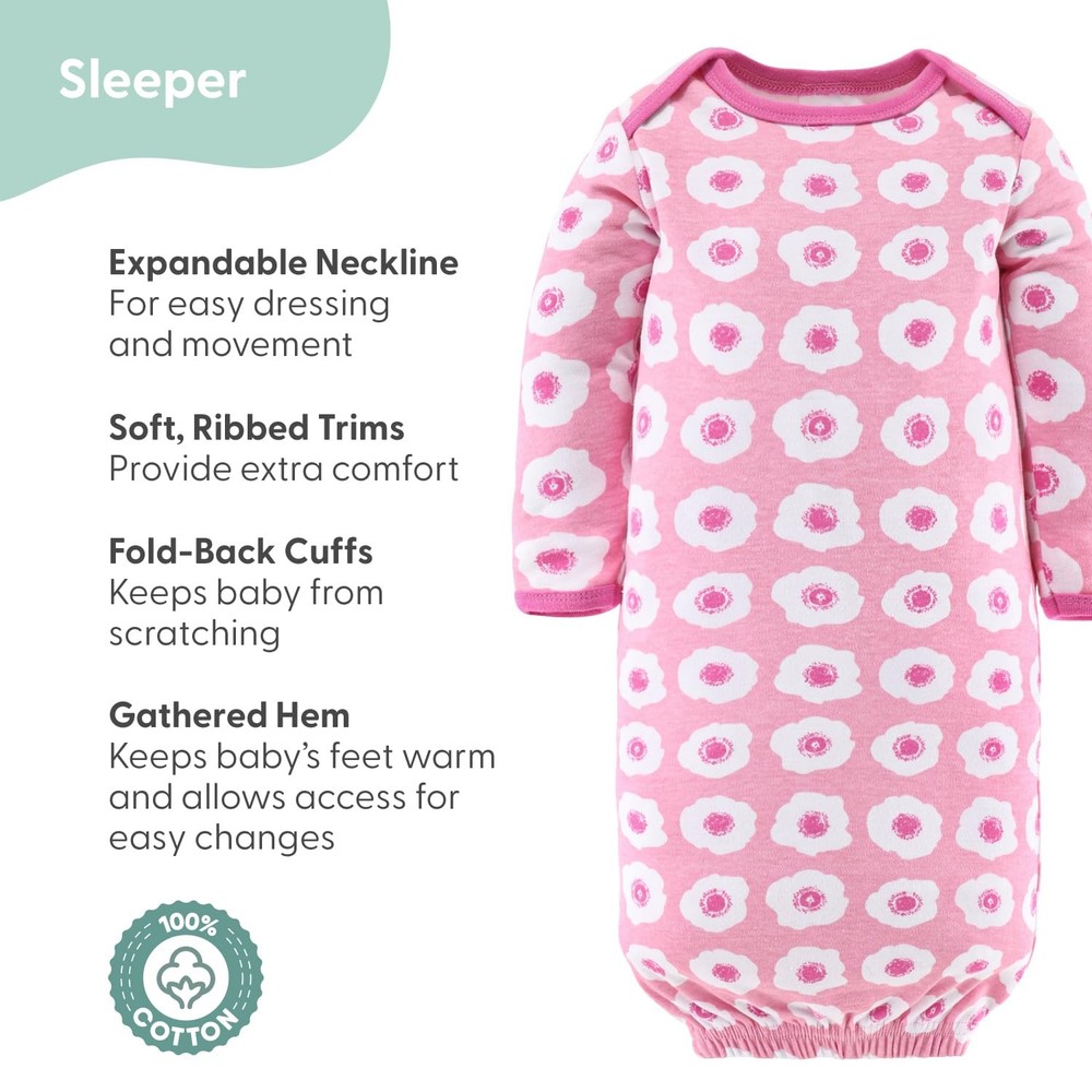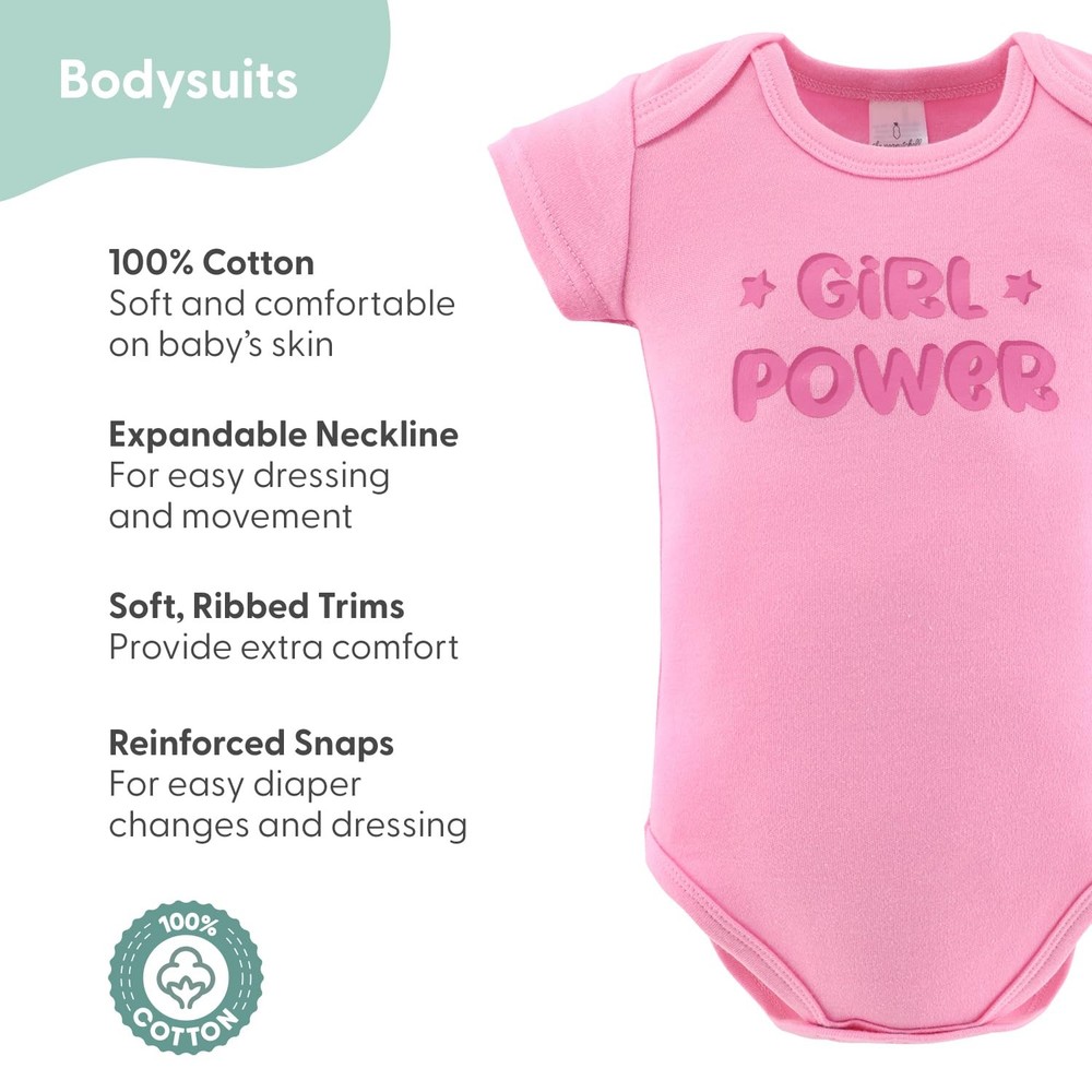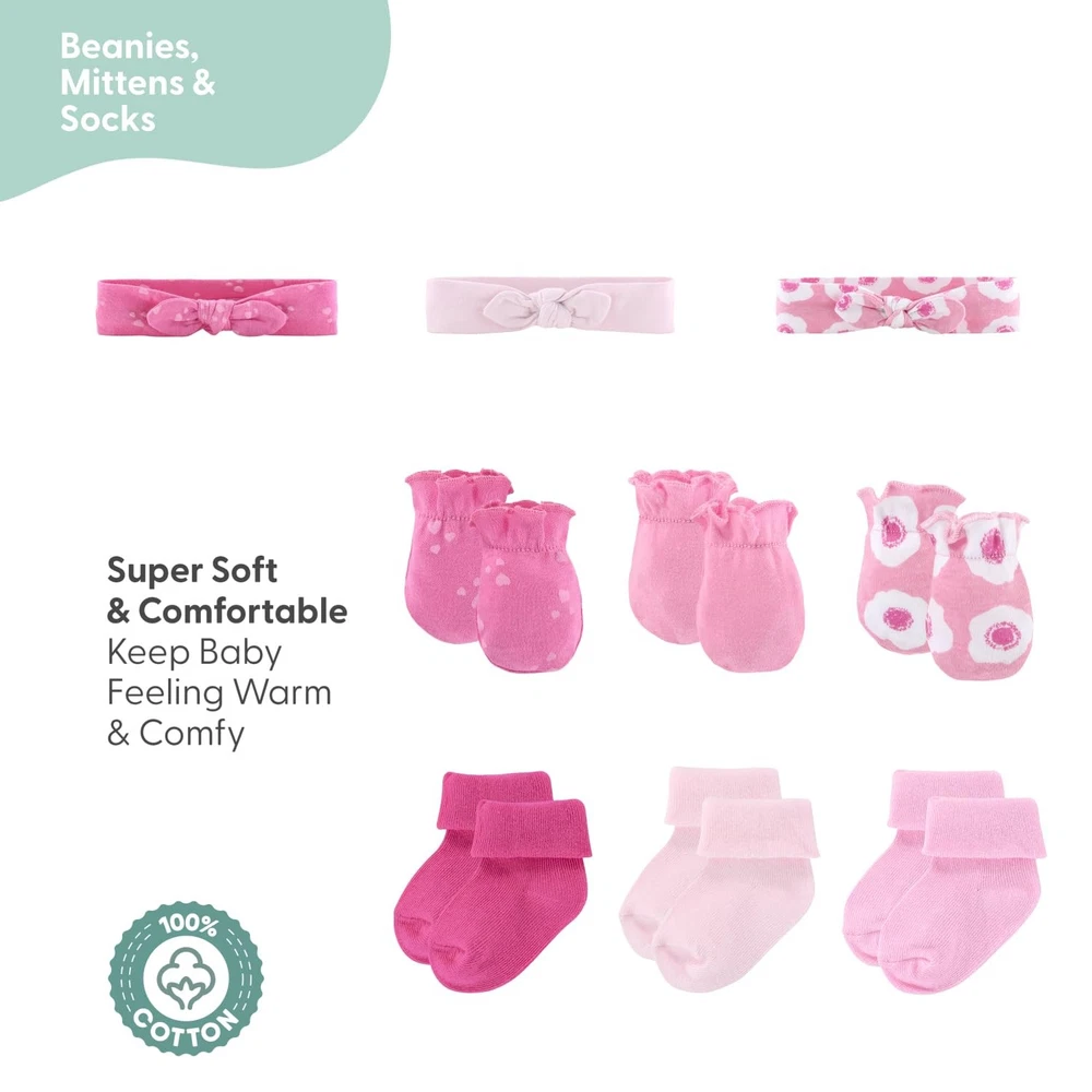 Newborn Baby Layette Gift Set offers 16 essential pieces crafted from ultra-soft, 100% cotton fabrics, providing gentle comfort for your baby’s delicate skin. Designed to keep your little cozy through every season, this set includes 3 short-sleeve bodysuits, 3 pairs of pants, a sleep sack, a wearable blanket with a zipper and snap tab, 3 hats, 3 pairs of mittens, and 3 pairs of socks. Each newborn baby clothes is designed for maximum comfort, making this baby essentials set a practical and stylish addition to your baby girl’s wardrobe. Featuring vivid fuchsia, pink, and white pieces with the bold floral print, this Pretty in Pink layette set allows your baby to showcase a cool, laid-back style from the very start. This 0-3 month baby clothing set makes an excellent baby shower gift, offering the essentials every newborn needs with a fun, modern twist. Plus, all the pieces are machine washable, ensuring that busy parents can easily clean and maintain these durable, soft items wash after wash. Combining comfort, practicality, and style, this new born clothes set is a joyful gift for any new parent. This baby girl set is perfect as a new baby girl gifts. Whether you are looking for a baby shower gift, doing a baby registry search, or need additions to a baby gift basket, they are sure to be appreciated by new parents as baby girl essentials. Soft Comfort: Each piece is made from ultra-soft, 100% cotton newborn clothes that are gentle on delicate skin. Designed for comfort, these 0-3 month baby girl clothes keep your little cozy in fall, winter, spring, and summer. Complete Essentials: With 16 versatile pieces, this set includes 3 short-sleeve bodysuits, 3 pairs of pants, 1 sleep sack, a wearable blanket with zipper and snap tab, 3 hats, 3 pairs of mittens, and 3 pairs of socks. Cute Style: Dress your baby in style with this Pretty in Pink vivid fuchsia, pink, and white pieces with the bold floral print items. Great for showcasing your baby’s cute vibe right from the start. Joyful Gift: This 0-3 month baby clothes set is the ultimate baby shower gift, packed with all the essentials a newborn needs. Newborn girl clothes are thoughtful choices that combine style, comfort, and practicality. Easy Care: Made with 100% cotton, these pieces are machine washable for quick and convenient cleaning. They’re durable and maintain their softness wash after wash, making them ideal for busy parents.