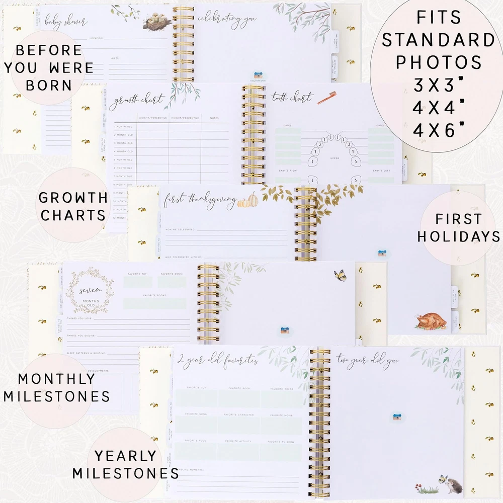 Baby Memory Book - First 5 Years Keepsake Album for Newborns Preserve Your Baby's Memories for Generations - Our Baby Keepsake Books are Designed with Superior Craftsmanship and the Finest Materials to Ensure Premium Quality Standards. Create Effortless Journaling in Just Minutes of Your Free Time - Our intuitive Baby Journals feature simple layouts, carefully tailored for busy parents. Highlight Every Cherished Moments, Beautifully - Our baby milestone books have been specially assembled to compliment and beautifully frame those precious moments and to bring them to life. Includes - 120 Pages, 6 Dividers (to keep you organized) with 6 Large Keepsake Pockets, 52 Photos and Sonogram Pages (fits all your standard photo sizes 3x3" - 4x4" - 4x6"), and Unique Features you won't find in other memory books. Our Promise to You - If for any reason, you are not happy with your purchase, please know that we are here to support you. Happy customers mean the world to us. Our baby keepsake book is the perfect way to preserve your baby's memories for generations. Designed with superior craftsmanship and the finest materials, this baby scrapbook is crafted to meet the highest quality standards, ensuring your memories are beautifully protected for years to come. Whether you're a first-time mom or an experienced parent, our baby journals for first time moms are created to make documenting your baby's journey effortless, with intuitive layouts that allow you to create meaningful entries in just minutes during your free time. Highlight every cherished moment beautifully as our baby milestone book frames your precious memories with stunning detail, bringing them to life in a way you'll treasure forever. This baby album and memory book also includes unique features that you won't find in other memory books, making it the ultimate baby album for preserving your little one's milestones. Here is what's included: - 120 Pages of beautifully illustrated artwork - 6 Dividers that keep you organized with 6 Large Pockets to safekeep your photos and documents - Family Tree - Pregnancy Pages - Baby's birth and Labor and Delivery Page - First Family Photos - Growth Chart and Tooth Chart - First 12 Months - First 5 Years - First Major Holidays -All Major Milestones - Letter to Baby Shipping We offer FREE shipping on all orders! We ship within Three business days of payment, usually sooner. We use a selection of shipping services such as UPS, FedEx, USPS etc. We only ship to the lower 48 states, no APO/FPO addresses or PO Boxes allowed. Local pickups and combined shipping options are not provided at this time. Return You can return a product for up to 30 days from the date you purchased it. Any product you return must be in the same condition you received it and in the original packaging. Please keep the receipt. Payment We accept payment by any of the following methods: PayPal Please pay as soon as possible after winning an auction, as that will allow us to post your item to you sooner! Feedback Customer satisfaction is very important to us. If you have any problem with your order, please contact us and we will do our best to make you satisfied. Contact Us If you have any queries, please contact us via ebay. We usually respond within 24 hours on weekdays. Please visit our eBay store to check out other items for sale! Thank you for shopping at our store.