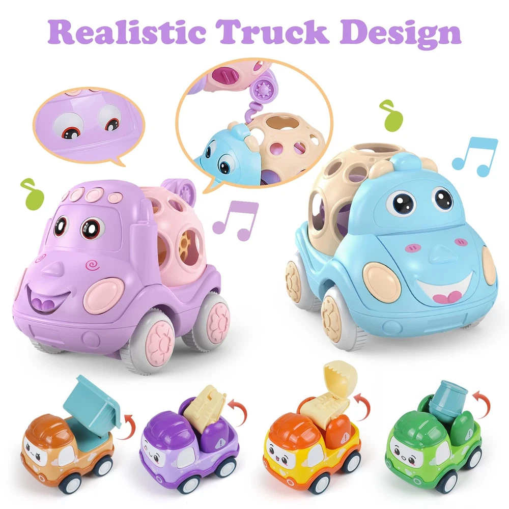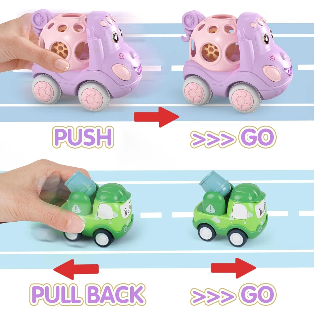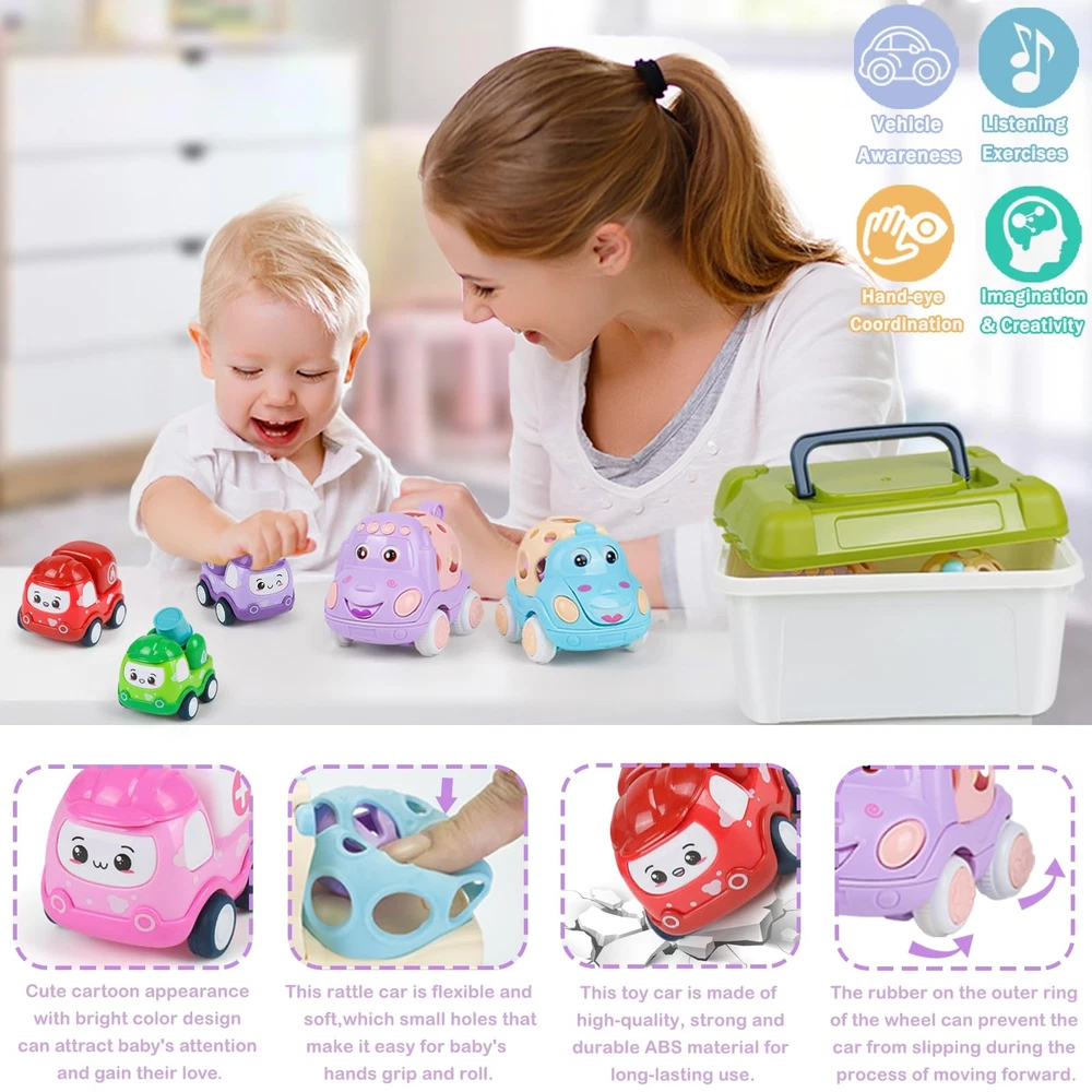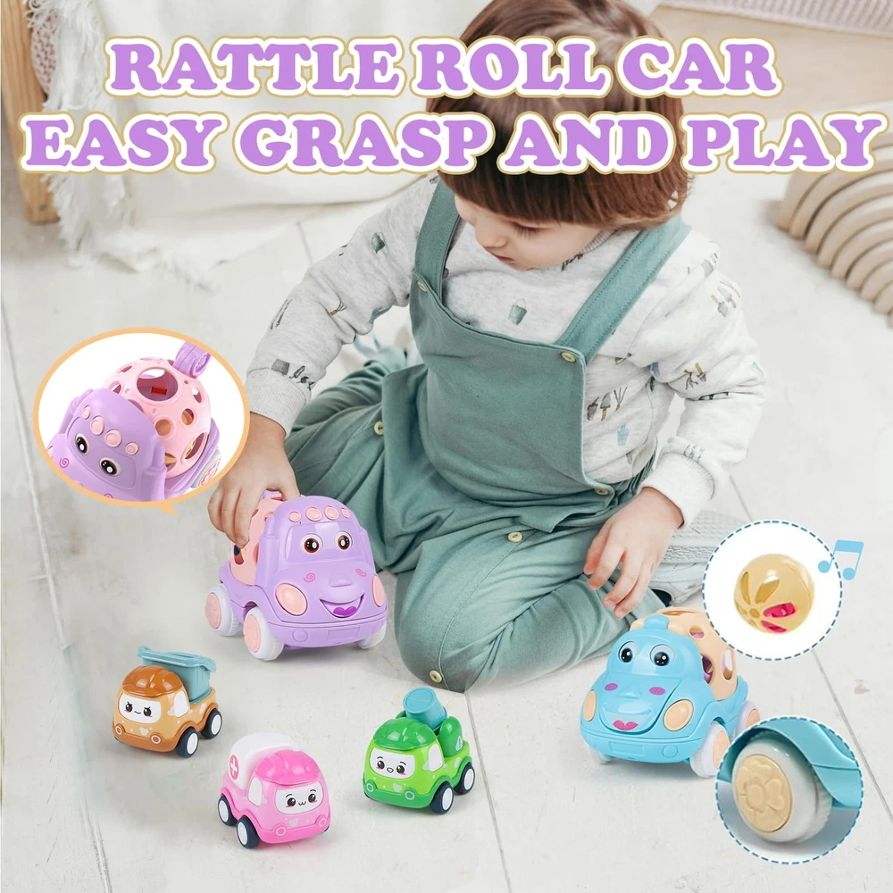 Baby Mini Pull Back Car Set for Toddlers 1-3 Rattle Roll Soft Car Toys for In...