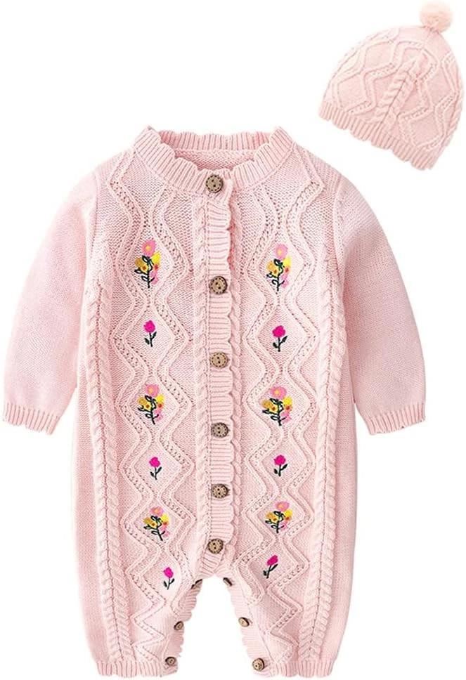 Baby One Piece Romper, there are many colors and styles, no matter what season, you can find suitable clothes. Occasion: Baby sweater romper perfect for daily wear,winter wear, Christmas,Birthday Party,Halloween Holiday, photography, daily wear, family day, baby shower etc. Warm baby girl sweater outfits,your girl must love it! Size: Newborn romper fall winter outfits suitable for 3-6 6-9 9-12 12-18 18-24 months infant baby girls. Please refer to the size chart before choose a size. Color: Pink/White/Navy Blue/Red/Beige/Yellow(Optional) A set of 2pcs: 1 x Baby girl sweater romper +1 x Hat Tip: The romper hats can be machine washed in cold water, however, hand washing is always recommended. Size (inch) 59 Bust: 20.47 Length: 22.05 Age: 3-6 Months(Suggest Height: 21.6-24inch) 66 Bust: 21.26 Length: 22.83 Age: 6-9 Months(Suggest Height: 24-25.9inch) 73 Bust: 22.83 Length: 24.02 Age: 9-12 Months(Suggest Height: 25.9-28.7inch) 80 Bust: 23.23 Length: 24.8 Age: 12-18 Months(Suggest Height: 28.4-31.4inch) 90 Bust: 23.62 Length: 26.38 Age: 18-24 Months(Suggest Height: 30.7-35.4inch) Please check the Size Chart carefully in the last picture carefully before order and allow 0.3-1.2inch measuring deviation due to measuring tools. Please note that slight color difference should be acceptable due to light and screen.