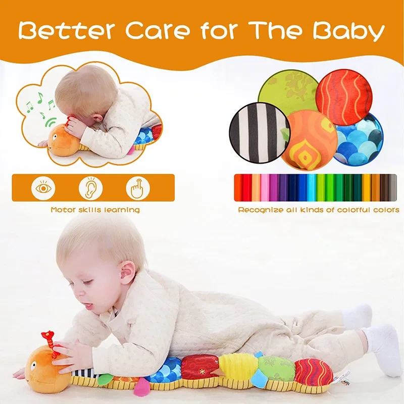 About this item Baby Musical Worm Toys - latest soft infant plush toy built-in music, you can hear a cheerful and cute melody when you squeeze the head, cute soft baby toys will make a variety of sounds: rattles, squeaks, bells, melody, rustling newspaper sound, greatly attract the baby's attention, stimulate their interaction, exercise early grasping ability, keep her occupied for long times!!! Stimulates Intelligence & Sensory Development - Our musical caterpillar baby toy can stimulate baby's curiosity and encourage them to discover and think, and exercise their minds to keep their brains flexible and sharp. And these soft stuffed animals toys for babies 6-12 months can promote baby's hearing, vision and touch development, distinguish colors, and greatly improve the ability of babies' eyes, ears and hands First-Class Quality & Exquisite Workmanship - These caterpillar toys for 6 month old girls are made of high quality light material, non-toxic, BPA free, not easy to fall off, fade or irritate your baby's sensitive skin, baby-friendly, not deformed by squeezing, colorful design, cute smiley face, lifelike, can successfully attract and please the baby, let them love it VISUAL STIMULATION: The toys are full of fun surprises, bright colors and gorgeous patterns for baby to discover, which can greatly help baby develop eye tracking skills and help awaken the little one's tactile senses, with little tags plenty to grab and inspiring little ones to play, shake and cuddle It has a loop on the plush toy hip, as car seat toys, plenty of fun on the go and is an excellent baby partner. It is equipped with a scale of meters and inches on the belly to keep track of growth, with a maximum size of 22 inches, as a list of gifts for babies' birthdays, Christmas, and for toddlers Warm Tip : 1.Keep away from fire . 2.Without original gift box,we will use PE Bag to pack it well and protect it well,please don't worry 3.Due to the difference between different monitors, the picture may not reflect the actual color of the item. We guarantee the style is the same as shown in the pictures. 4.Manual measurement may have an error of 1-2 cm.