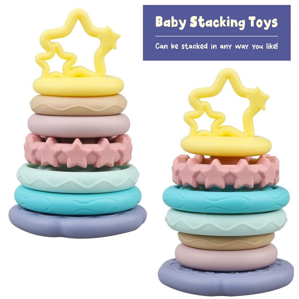 Baby Sensory Teething Toys - Baby Teether Montessori Toys - Gifts for Infant Newborn Boys Girls 6 9 12 18 Months 1 One Year Old - Stacking Rings Bath Toys - Toddler Educational Learning Toys [ Baby Teething Toys ] - Our baby teether toy is made of 100% food-grade silicone, BPA Free, and without small parts. It can soothe baby's mood during teething and alleviate the discomfort caused by gum pain. Slightly hard, no worry about wear and tear when chewing! [ Muti-Sensory Baby Toys ] - Includes a cute star topper and 6 silicone rings with different textures, sizes and colors. The center of each ring is the same size, allowing it to be stacked in any way for frustration-free play! [ Montessori Toys for Babies ] - Toddlers develop gross and fine motor skills, color, letter and number recognition, cause and effect, problem-solving skills while having fun! [ Easy to Clean & Carry ] - Dishwasher Safe(Wash with warm soapy water before use). Lightweight and Tiny hands friendly. Easy to take on stroller, car trips, airplane and more! [ Ideal Baby Gifts for Boys & Girls ] - Suitable for newborn, baby shower, birthday, Christmas [ Baby Teething Toys ] - Our baby teether toy is made of 100% food-grade silicone, BPA Free, and without small parts. It can soothe baby's mood during teething and alleviate the discomfort caused by gum pain. Slightly hard, no worry about wear and tear when chewing! [ Muti-Sensory Baby Toys ] - Includes a cute star topper and 6 silicone rings with different textures, sizes and colors. The center of each ring is the same size, allowing it to be stacked in any way for frustration-free play! [ Montessori Toys for Babies ] - Toddlers develop gross and fine motor skills, color, letter and number recognition, cause and effect, problem-solving skills while having fun! [ Easy to Clean & Carry ] - Dishwasher Safe(Wash with warm soapy water before use). Lightweight and Tiny hands friendly. Easy to take on stroller, car trips, airplane and more! [ Ideal Baby Gifts for Boys & Girls ] - Suitable for newborn, baby shower, birthday, Christmas Shipping from the USA All of our products are shipped from the USA, ensuring quick delivery to your destination. Payment We offer the following payment methods: PayPal, credit card, bank transfer, and eBay's secure payment system. Free Shipping & Free Returns Shipping within the USA is FREE. Additionally, any return is absolutely free for you. Risk-Free Purchase You have the option to return an item within 30 days without any justification. We cover the return shipping costs! Fast Shipping We ship immediately upon receipt of payment. Generally, the package is delivered within 2-3 days in the USA. If it takes longer, we will contact you. Quality and Costs Made in Europe, USA, China No customs fees or additional charges Total satisfaction guarantee Invoice with declared VAT available upon request in .pdf format Feedback Your feedback is very important to us. After you pay for your purchase, you will automatically receive positive feedback from us.