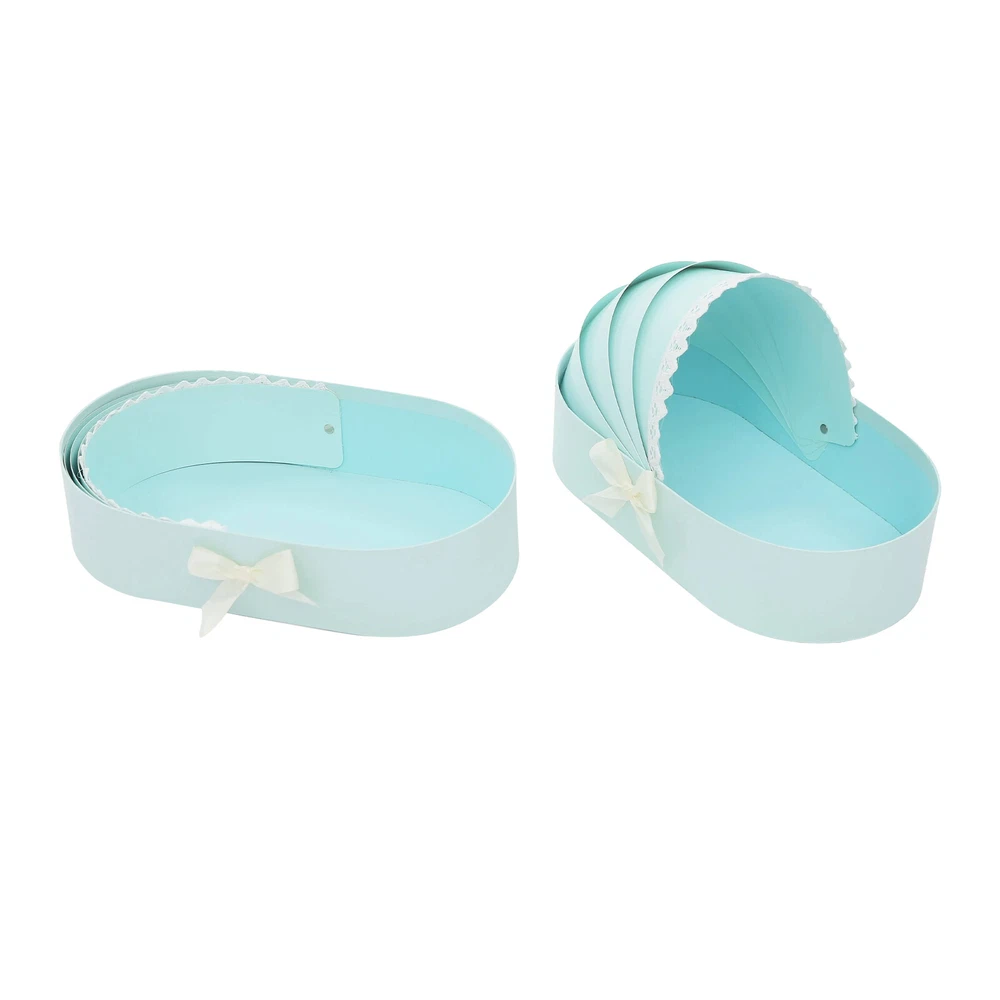 Baby Shower Crib Basket Shaped Cardboard Box Decorative Paper Mache Description Description Our c radle gift box is unique in its cradle-shaped design as if to integrate the joy and warmth of new life into it. The edge of the box is decorated with delicate white lace, which looks like a soft layer of yarn for the cradle. There is also a beautiful white bow on the side, which is like wearing an elegant ornament to the gift box. It is not only a container but also a piece of art that conveys the mind, which is the ideal choice for expressing your blessings and love on various occasions. Key Features Premium Material: It is mainly made of premium paperboard , with a handmade process, which is safe, non-toxic, and scratch-resistant, ensuring long-term use. Delicate Appearance: The creative cradle shape in blue and white colors presents a warm, elegant, and romantic atmosphere, making it easy to blend into warm occasions. Set of 10: Our package includes 10 items, which are enough to meet your daily needs. You can use these boxes as a set or separately for different areas. Suitable Size: The product has the right size( 13.19*6.89*3.15 in), providing enough space to match your carefully selected small gifts to meet diverse needs. Thoughtful Design: The handle can be easily opened and closed, which not only adds a smart beauty to the appearance but also provides great convenience in practicality, which is convenient for the storage and transportation of the product. Eco-friendly Concept: It is recyclable, reducing the impact on the environment and making your gift more meaningful. Conveying Regard: When you give the gift in the product with the shape of a cradle, you are not only appreciating your guests for their arrival but also sharing your joy with them and wishing them a happy family. Ready to Use: It does not need assembly, so you can directly use it after receiving it, greatly saving time and effort. Good Customer Service: We stand behind all our guests and look forward to assisting you with your purchase. It is our pleasure to answer your confusion and questions. The end of the story between us is not "we sell and you buy". Details Rounded Edges: The rounded and smooth edges not only add to the aesthetics of the product but also improve the safety of use. Lace & Bow: The delicate white lace edges and pretty white bow add a touch of sophistication to the product, making the product look more glamorous and enhancing the overall visual effect. Application It can be used to put flowers, cookies, candies, snacks, small gifts, and so on. It is suitable for baby showers, birthday parties, prenatal parties, weddings, celebrations, etc. Specifications Material: Paperboard Process: H andmade Shape: Cradle-shaped Color: Blue+ White Style: Modern Number of Pieces: 10 Assembly Required: No Load-bearing Capacity: About 1.5kg/3.31 lbs Box Size: 33.5*17.5*8cm/13.19*6.89*3.15 in Product Overall Height(Unfolded Handle): 21cm/ 8.27 in Package Size: 70*40*25cm/27.56*15.75*9.84 in Gross Weight: 6kg/13.23 lbs Net Weight: 5.7kg/12.57 lbs Payment Delivery details Terms of sales About us Contact us Payment We accept ebay payment 。 Fees such as import duties, taxes are not included in the item price or shipping costs. These charges are the buyer's responsibility. Delivery details Shipping: 2-9 working days to: USA Terms of sales We maintain high standards of excellence and strive for hundred percent customer satisfaction. Feedback is very important to us. We hope that you contact us immediately before you give neutral or negative feedback, so that we can address your concerns. It is impossible to address issues if we do not know about them! About us Your satis faction is our ultimate goal. We work hard to earn your trust and future business. Our certified technicians have tested each item before shipping. The unit comes with 1 year limited warranty on all manufacturing defects. a) If you receive a defective item, you may return it or ask for a discount. Please contact us within 14 days after you receive the package. b) What you returned must be intact and in its original packaging as re? u. Customer is responsible for shipping costs of the returned item. c) We will cover the cost of shipping back t with the shipping rate indicated in the registration page. We will send you a new unit or refund the full payment you paid. Thank you. Contact us Business Hour Business Hour: Monday To Friday: 8:30 AM to 5:00 PM (Beijing China time) Due to time zones, our reply to your questions may not be immediately. But within above working time, we will reply your email within 24 hours. If it's non-workdays, please kindly be patient and wait till Monday. Please contact us with ebay message. Please feel free to contact us if you have any questions. Monday To Friday: 8:30 AM to 5:00 PM (Beijing China time) Due to time zones, our reply to your questions may not be immediately. But within above working time, we will reply your email within 24 hours. If it's non-workdays, please kindly be patient and wait till Monday. Please contact us with ebay message. Please feel free to contact us if you have any questions.