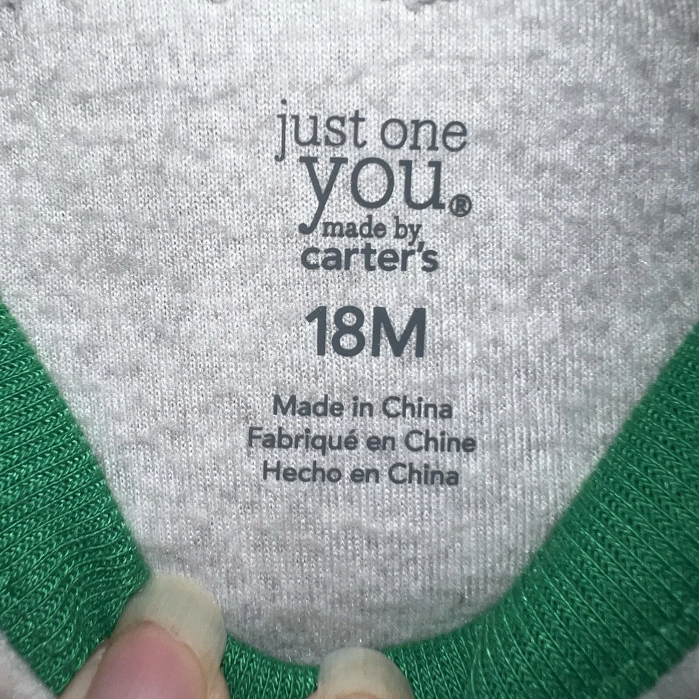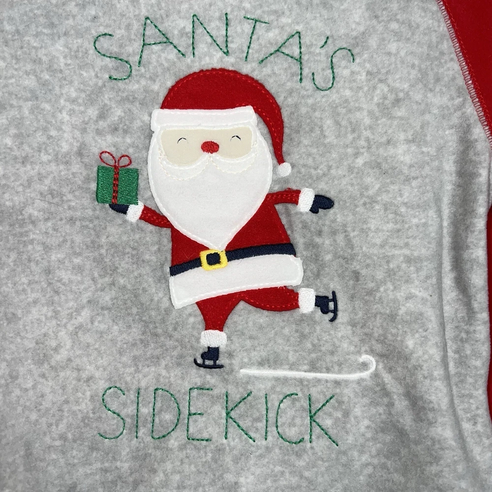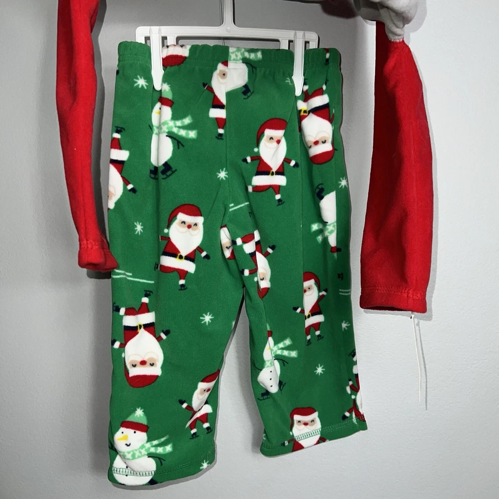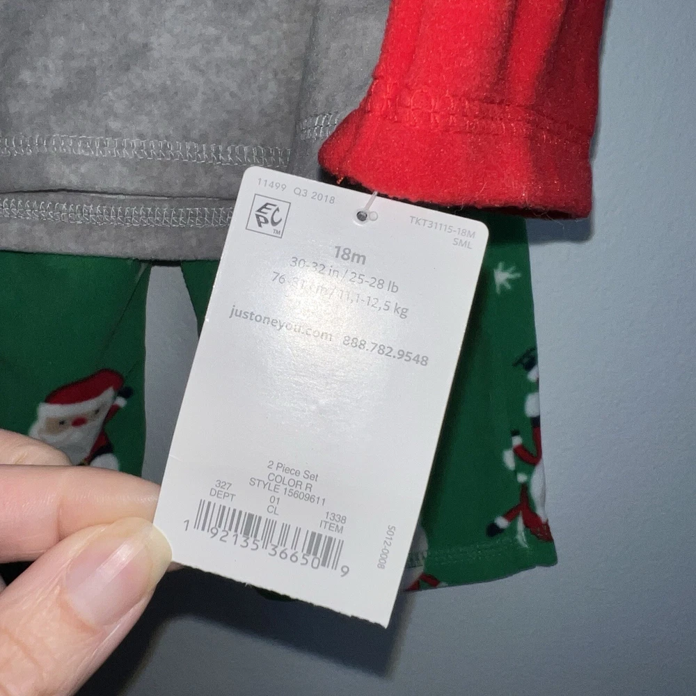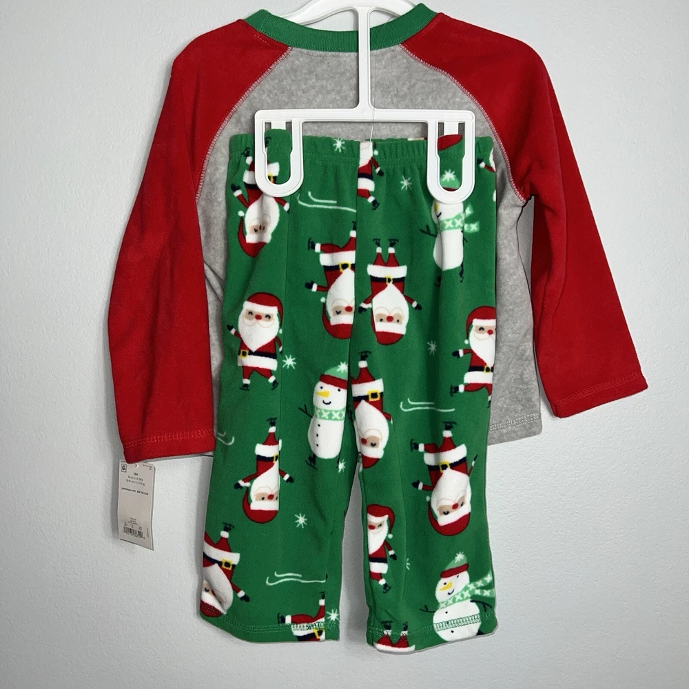 Just one you by Carters Christmas Holiday Xmas Fleece PJs pajamas 2 piece - long sleeve raglan top and pants bottoms 18 mths months Baby toddler boy Red Green Grey Santa embroidered applique on the shirt Pattern pants STYLE 15609611 New with tag NWT GPU JKS2758 Ninja Santa’s sidekick snowman