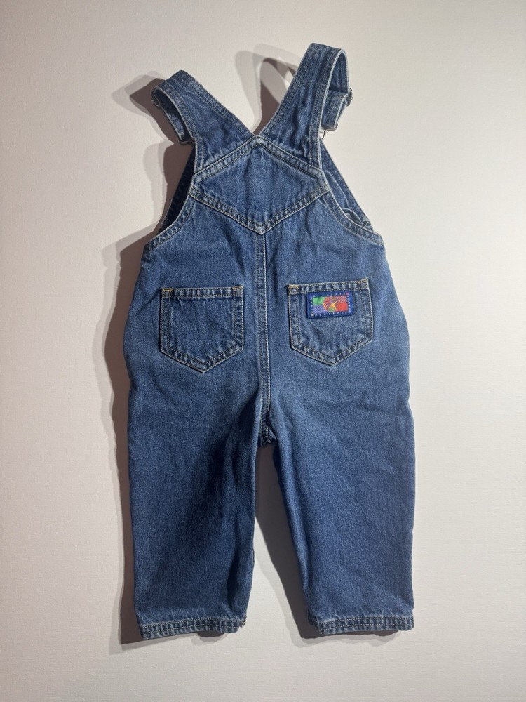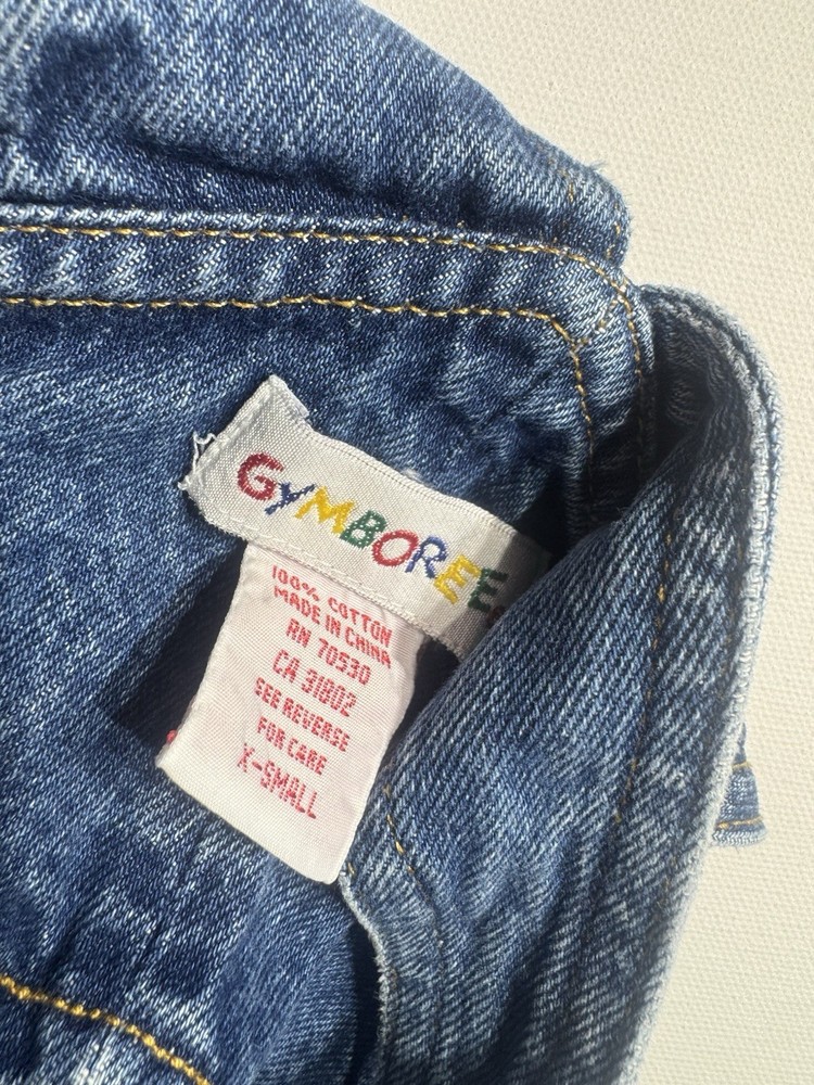 The product is a pair of vintage Baby Gymboree denim overalls in size 3-6 months, featuring snap closures for easy dressing. The overalls are in a classic blue color and are designed in a traditional overall style. Suitable for both boys and girls, these overalls were made by the brand Gymboree and are perfect for a toddler's wardrobe, adding a touch of nostalgia to their look.
