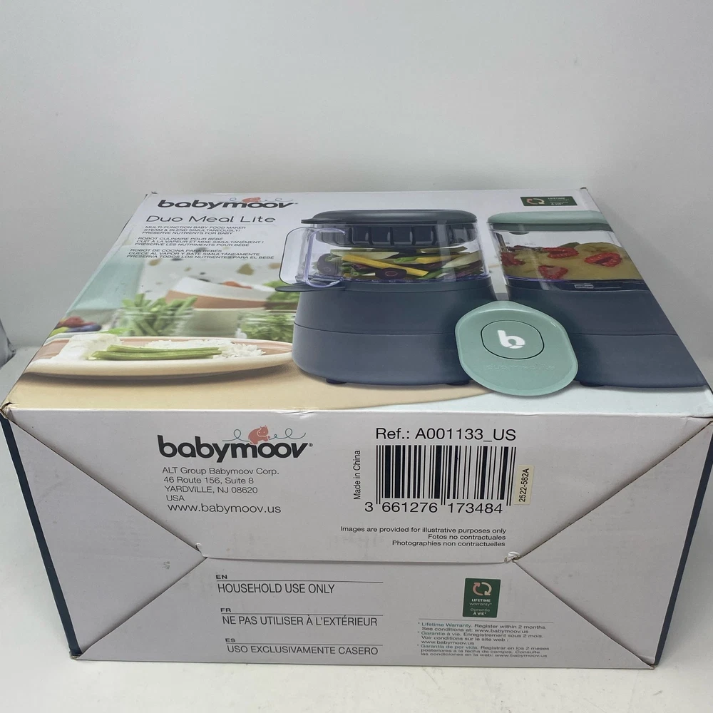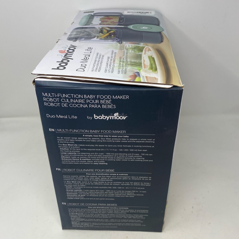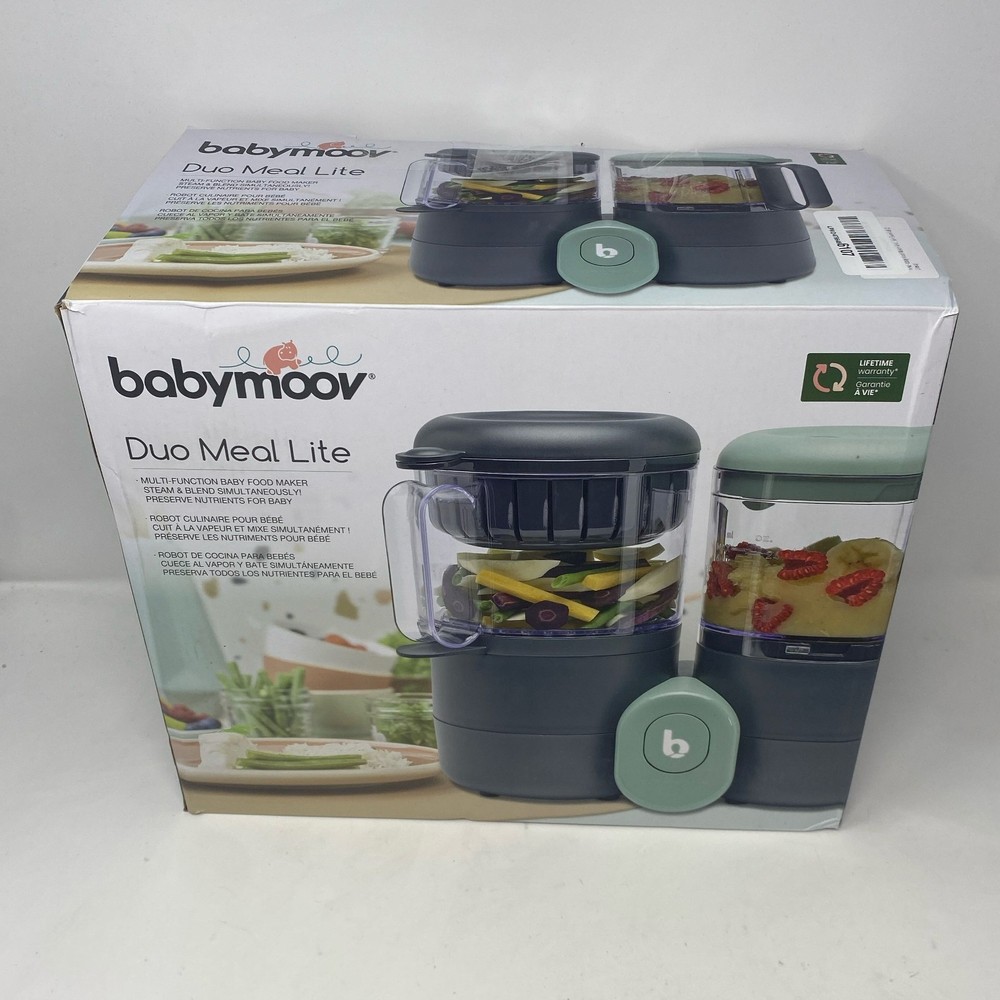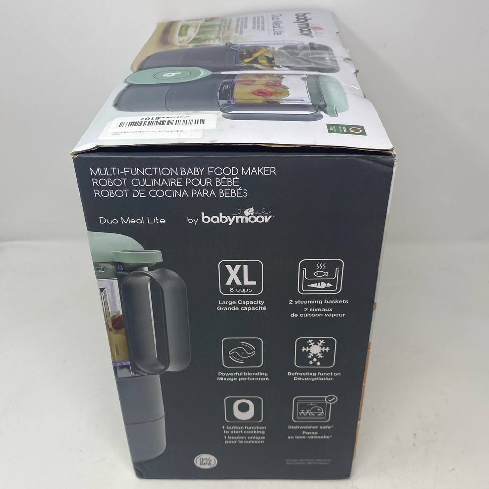 Condition: New - Open Box See photos for full visual reference Model: Babymoov Duo Meal Lite Baby Food Maker, Dark Grey/Mint, 68 oz At Unturned, we were shocked to discover how many perfectly functional returns were being wasted. That's why we made it our mission to offer these e-commerce returns—often overlooked and discarded—at unbeatable prices. We carefully inspect and test all our products to ensure quality and accurately describe their condition. However, if you receive an item that does not match the description or meet expectations, please reach out, and we will make it right!