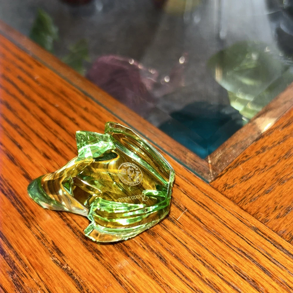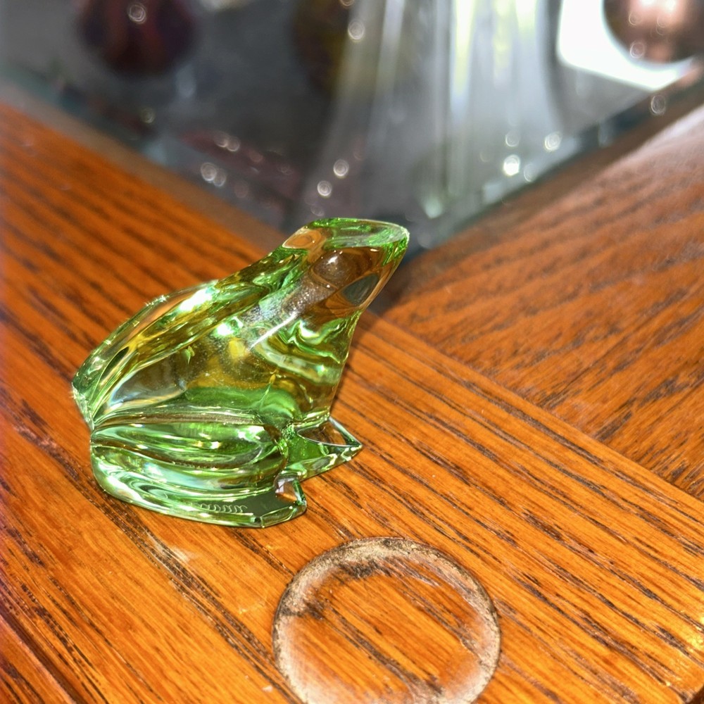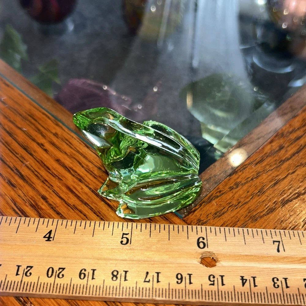 Beautiful pale green Baccarat crystal frog. It measures about 2” long. It is in excellent condition, and fully marked in the bottom. I can feel I little rough spot in a toe, but I can’t see anything. Probably a tiny flea bite, otherwise excellent condition. I can combine on shipping whenever possible.