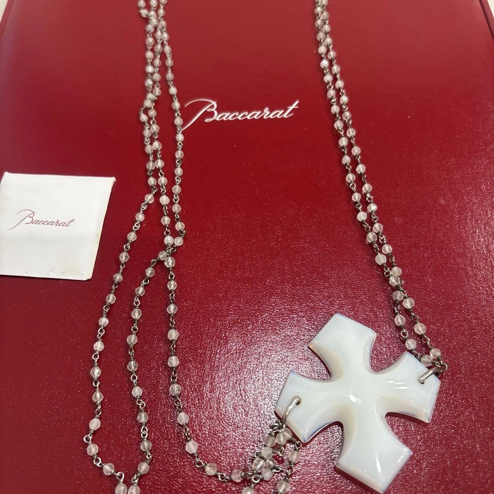 Baccarat Long Necklace Pendant Cross Rosalie Long Opal Silver White W/Box Used Description This is an unused item. The box has deteriorated. Color: Silver/White Design: Cross motif Bulk Discount Discounts are available for bulk purchases of small items! For more information, please contact us by specifying the desired product. Payment We accept ebay Management only. Please make a payment withen 3days after the purchase. Shipping Fedex or Japan Post I am sorry to inform you but I do NOT ship to the address which is not registered on eBay. I will inform you the tracking number by email once shipped it out. The item will be shipped out from Japan. International Buyers - Please Note: ·Import duties, taxes and charges are not included in the item price or shipping charges. These charges are the buyers responsibility. ·Please check with your countrys customs office to determine what these additional costs will be prior to bidding/buying. ·These charges are normally collected by the delivering freight (shipping) company or when you pick the item up do not confuse them for additional shipping charges. ·We do not mark merchandise values below value or mark items as gifts US and International government regulations prohibit such behavior. Provided by HARU