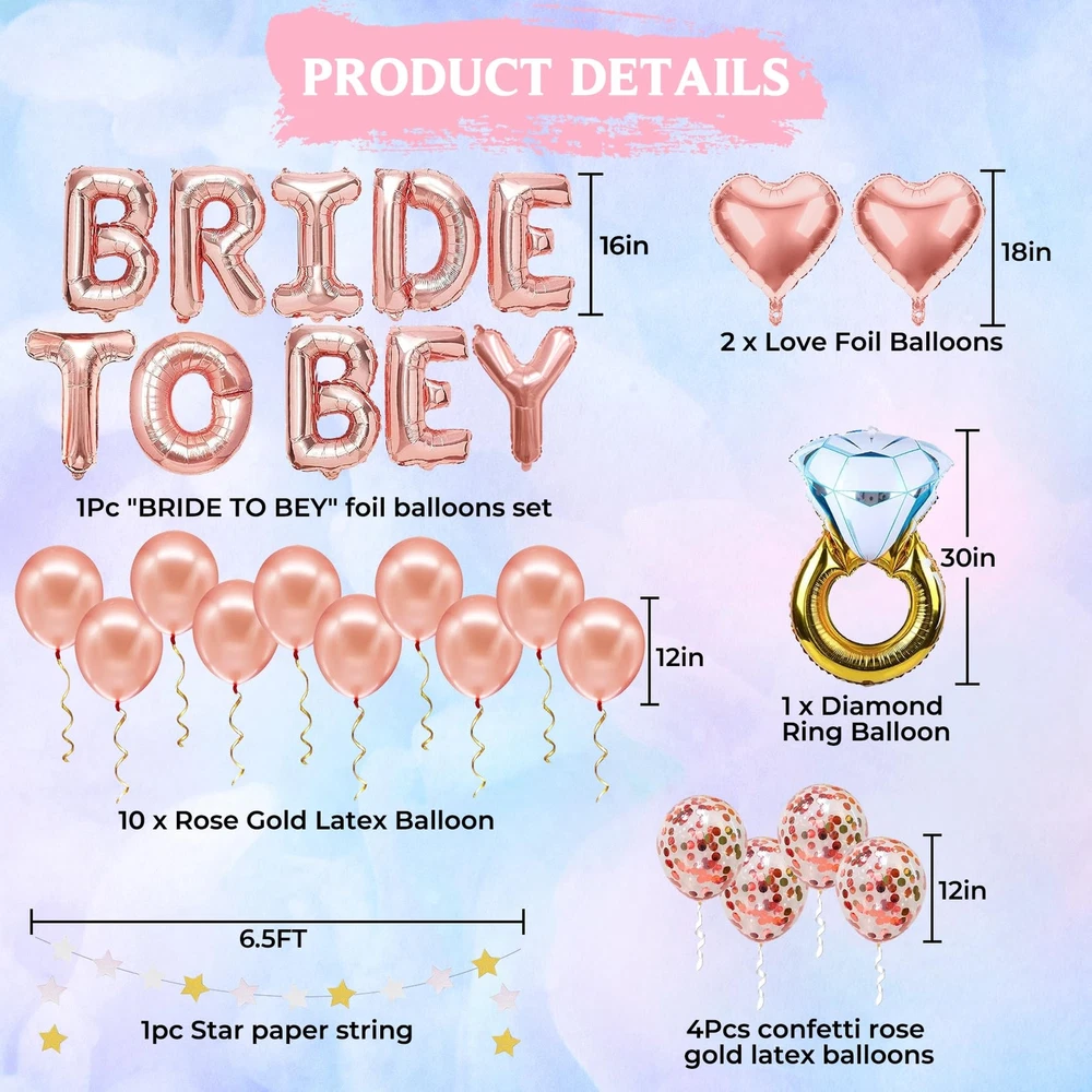 Bachelorette Party Decorations Supplies Bridal Shower Decor Bride Balloons Rose Gold Bachelorette Decorations Bride To Bey Balloons Bachelorette Balloons And Veil Bride To Be Bachlorette Party Naughty PARLONTY is focused on providing a wide range of party decorations and ornaments meant to help you create a whimsical and festive decor to celebrate with your loved ones! We are working with superior quality materials and chic designs to bring to your doorstep fun and modern party decorations that promise to transform any decor into a whimsical space and set the mood for an unforgettable event! Are you experiencing any issues with your order? There is no need to worry because we are always at your disposal to address any concerns. Rose Gold Bride-To-Be Decorations – Set the Mood for an Amazing Party These rose gold balloons and decorations are everything you need to create a whimsical party decor and celebrate a bride-to-be with style! This set comes with all the bachelorette party decorations such as balloons, foil fringe curtains, bridal veil and many others, ideal to party and celebrate this special moment in a festive and fun ambiance! Gather your closest friends, get the champagne and camera and make beautiful memories in a spectacular decor setting! Don’t worry, these party decorations are made with durable, high-quality materials that will last throughout the entire party! Still not convinced? Here are some of the amazing features of our bachelorette party decorations: 20-pcs bachelorette party supplies; Cute and fun party decorations; Ideal for bachelorette party, bridal shower, engagement, wedding party, bridesmaid photoshoots, and more; High-quality materials; Create a spectacular party decor; What’s Included: 1 x Bride to bey balloon set 1 x Diamond ring balloon 1 x Giant Bottle Balloon(10m) 1 x Giant champagne bottle balloon 14 x Rose gold latex balloons 2 x Love foil balloons 1 x Bride to be sash 1 x Bridal veil 2 x Rose gold foil fringe curtains Make your bridal shower an unforgettable event with our bride-to-bey party decor Celebrate with Style: Whether you are preparing a surprise bridal shower for your soon-to-be-bride friend or you want to make your engagement unforgettable, our bride to be decorations are what you need to set the party mood and celebrate with your girls on this special occasion! What’s Included: The PARLONTY engagement party decorations include all the party supplies you need to create a superb setting, such as rose gold latex and foil balloons, Bride-to-be balloons, bridal veil, bride-to-be sash, diamond ring balloon, foil fringe curtains and more. Chic Bridal Decor: These rose gold balloons and decorations make the perfect bridal shower backdrop, creating a festive mood and the ideal decor for capturing these moments! Gather your girls and celebrate the engagement in a stunning bachelorette party decor! Superior Quality Decorations: Our bachelorette decorations and bride balloons are made with superior quality materials, including thick latex and foil. The balloons are durable, easy to inflate and will last throughout the entire party. Perfect for Special Occasions: The bridal shower balloons and supplies are eye-catchy and fun, perfect to celebrate special moments such as bachelorette parties, bridal showers, birthdays, anniversaries, engagement or wedding parties and more. Shipping from the USA All of our products are shipped from the USA, ensuring quick delivery to your destination. Payment We offer the following payment methods: PayPal, credit card, bank transfer, and eBay's secure payment system. Free Shipping & Free Returns Shipping within the USA is FREE. Additionally, any return is absolutely free for you. Risk-Free Purchase You have the option to return an item within 30 days without any justification. We cover the return shipping costs! Fast Shipping We ship immediately upon receipt of payment. Generally, the package is delivered within 2-3 days in the USA. If it takes longer, we will contact you. Quality and Costs Made in Europe, USA, China No customs fees or additional charges Total satisfaction guarantee Invoice with declared VAT available upon request in .pdf format Feedback Your feedback is very important to us. After you pay for your purchase, you will automatically receive positive feedback from us.