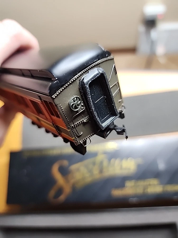 The trim around the front and rear doors looks a bit warped to me. I'm cleaning out my dad's estate, so I have many trains in all scales that I'm trying to find new homes for.