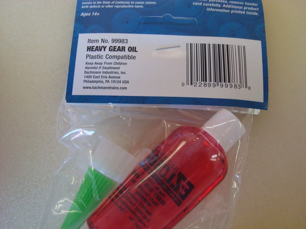 This is a brand new package of Bachmann 99983 heavy gear oil MORE GREAT DEALS IN OUR OTHER AUCTIONS! INTERNATIONAL SHIPPING POLICY ** PLEASE READ ** All international shipments are by 1st class International Mail or Priority Mail, whichever is cheapest, by size and weight. Payments are strictly required within 10 days and Paypal is preferred. We will not falsify customs forms or mark parcels as "gifts" and we do not do bank wire transfers. Shipping rates are quoted by weight and materials cost plus a $6.00 handling charge for filling out customs forms and taking to the post office for processing per parcel. This charge is per parcel, not per auction. Thank you. Thank you for looking and good luck bidding! Please make note of extended handling time.