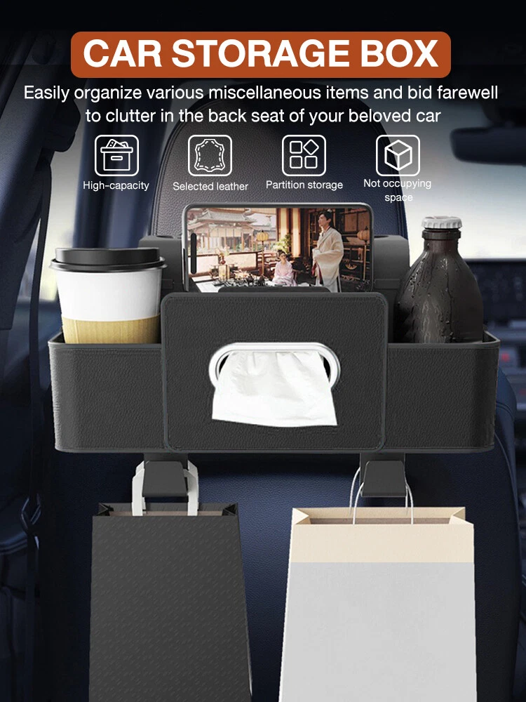 Features: Super storage, convenient upgrade: set of multi-functional storage box and intelligent partition design in one, easy to organize all kinds of sundries, so that the backseat of the car goodbye to clutter, for your travel all-round quality, enjoy a comfortable journey. Easy to install, stable and worry-free: closely fit the back of the seat, with the stabilizing buckle can easily handle the installation, does not take up extra space, but also can be fixed steadily without sliding, convenience pull full. Excellent quality and durability: Selected ABS material with wear-resistant leather is carefully crafted, fearless of frequent daily use, anti-abrasion, anti-color fading, tear-resistant, and still as good as new after years of use. Thoughtful design, easy to use: ad hoc built-in tissue bag storage space, suitable for ordinary tissue storage, while reserving space for cell phones, cups, snacks and other commonly used items, easy to use, always keep the car neat and tidy. Wide range of adaptability, a car must have: whether it is a caravan, truck, car, SUV or convertible, all applicable, sufficient storage space to meet the needs of all types of models to store the essentials, easy to create a well-organized car environment. Specification: Product name: car seat back organizer Material: leather + ABS Features: hooks + storage + tissue box + bracket Installation: direct mounting with clips Product weight: about 340 grams Product size: about 32x5x10cm Package List: 1* Car seat back organizer On Jan 6, 2025 at 23:09:23 PST, seller added the following information: