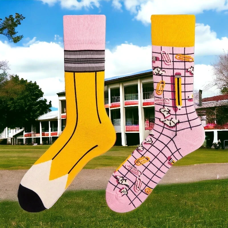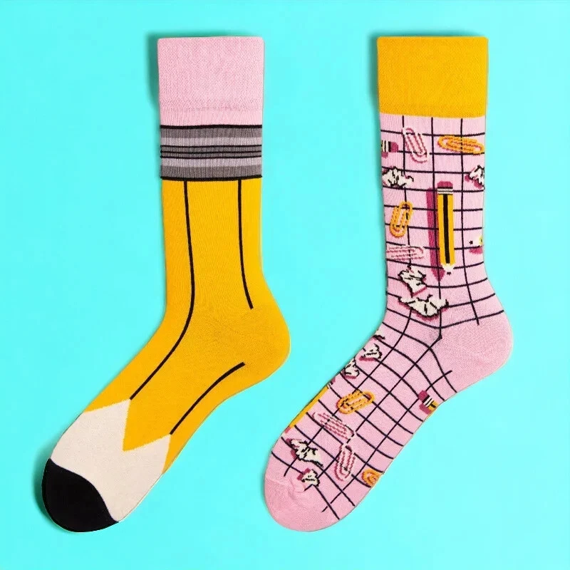 One pair of socks, Our ODD Socks are the perfect addition to any look. Crafted from a blend of 73% cotton and 25% polyester with 2% spandex for added stretch, these high-quality socks are breathable and sweat-absorbent. The anti-bacterial and sustainable fabric make them ideal for sporty and asymmetric fashion. The creative mismatched design offers a fun and trendy twist for both men and women, making them a versatile choice for various occasions. Overall, the Fashion ODD Socks seem like a great way to upgrade your look while staying comfortable. Add a touch of street style to any outfit with these crew dress socks.