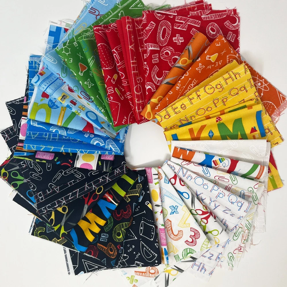 Create a STUNNING quilt, or simply add to your fabric stash with these beautiful 2.5 inch pre-cut fabric strips. Back To School Jelly Roll® 20890JR Moda Precuts Pre cut strips quilt fabric Stacy Iest Hsu JELLY ROLL MODA There are 40 different fabrics in these jelly rolls. Each piece measures 2.5 x 42 They are factory cut by Moda Studios for accuracy. These strips are perfect for strip quilting or any Jelly roll patterns They are all 100% cotton quilt shop fabric, and they come from a smoke-free pet free store. If you have any questions please feel free to contact me. Super fast shipping, so you will have your cute little fabric bundle in 2-3 days. We support your addiction...to fabric!