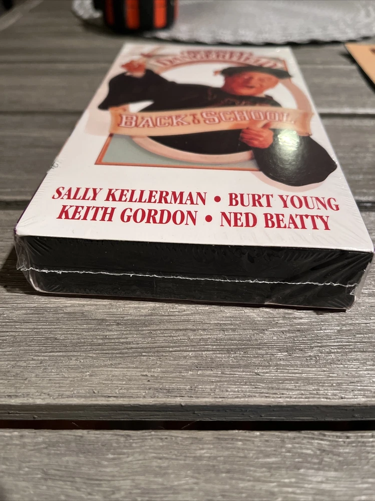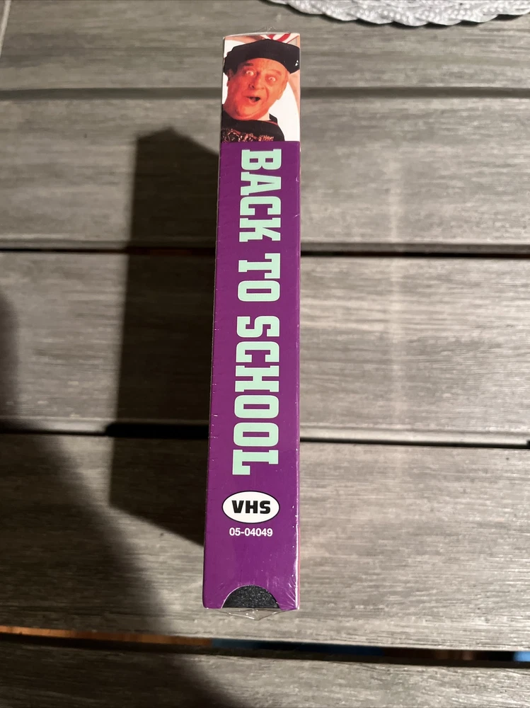 Back To School Movie Counter Standee & VHS Mint Rare Rodney Dangerfield Classic Standee is in mint condition, never used and a true collectors item. Amazing item for any game room. Brand new vhs tape still in original wrapping. No tears or rips.