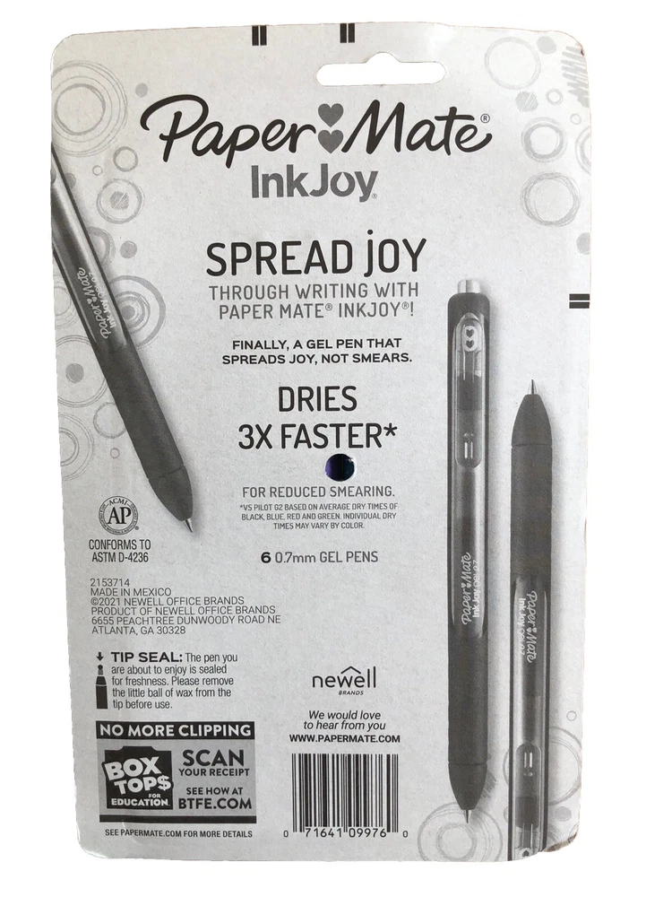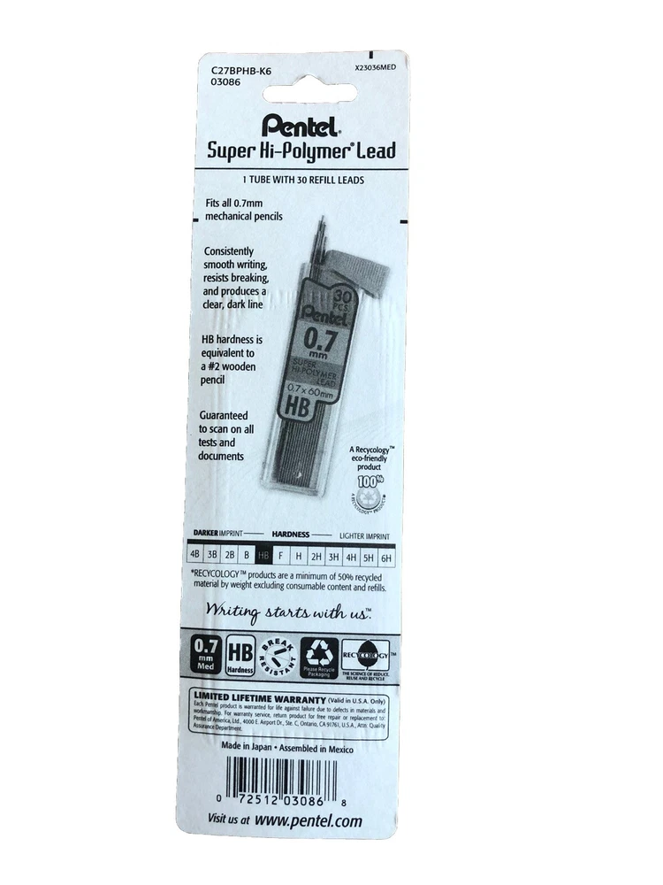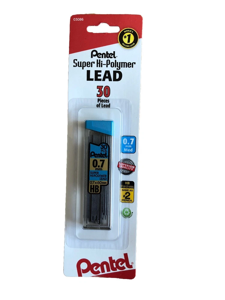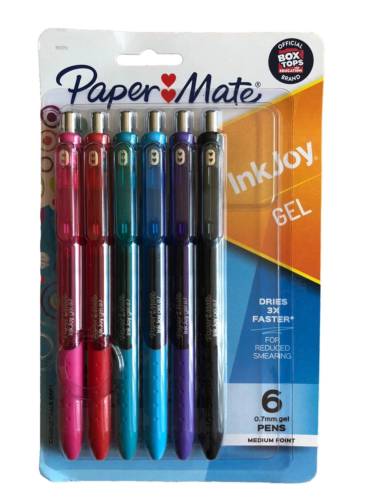 All new in packages. Pentel Super Hi-Polymer Lead refills, 30 Ct, 0.7 mm Medium Wexford Extra Durable Labels, 45 count Wexford Compass & Protractor Set 2 Pilot Ball Frixion Clicker Erasable Fine Gel Ink Pens 2-Pack, Black 0.7 mm Paper Mate InkJoy Gel Pens, 6 count, 0.7 mm Medium Point