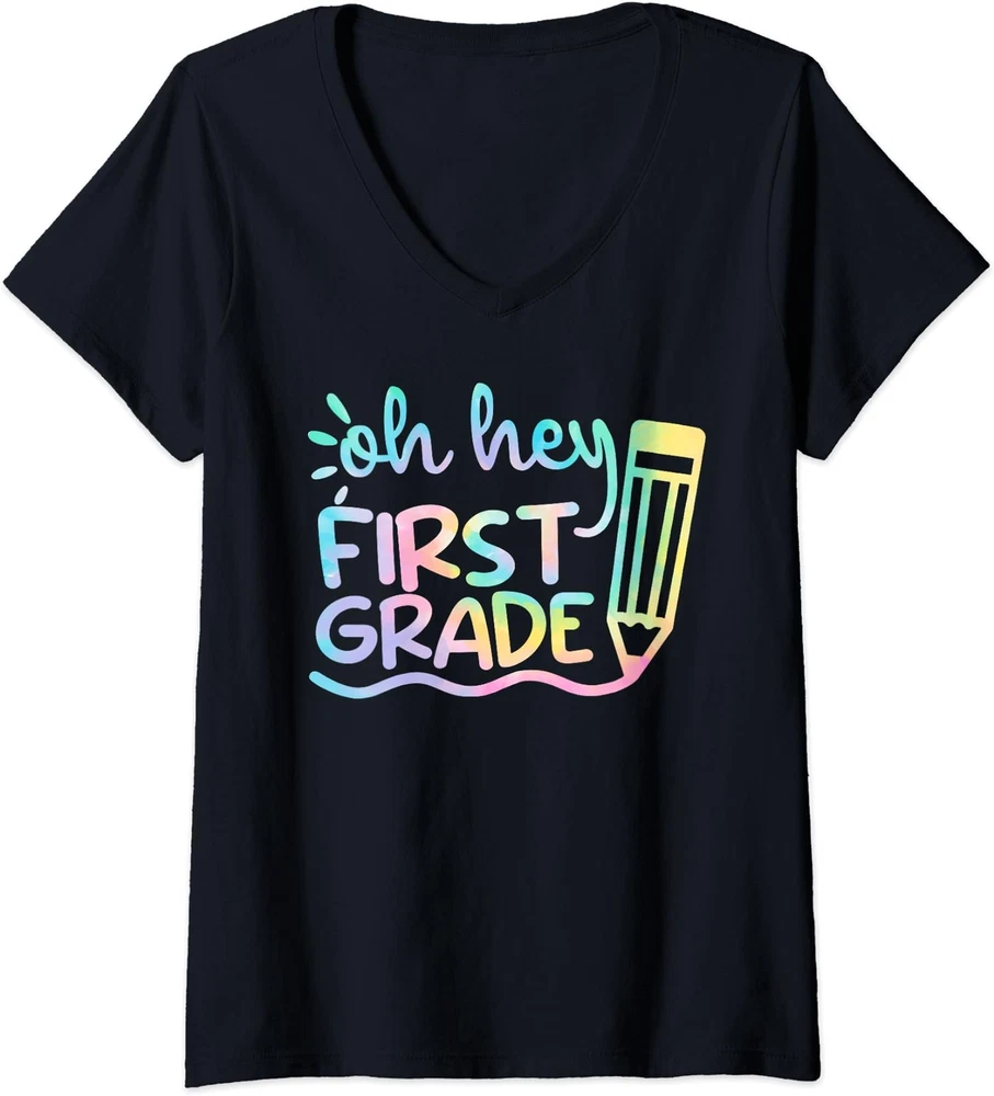 Welcome to Our eBay Shop Fast Shipping Hasslefree Returns Secure Payment Excellent Service Back To School Oh Hey First Grade Tie Dye Cool Gift Product Description All of our t-shirts are brand new and made to order. They are printed in our New York facilities with love and passion. We use various printing methods to ensure you the high quality, long lasting garments you or your loved ones deserve. We carry sizes from Small to 2X-Large in Ladies' Vneck t-shirts (depending on the design). You can refer to "SPECS & SIZING" to get accurate information regarding the sizes of the garments we use. This design is also available and printed on different types of garments in our store.If you would like this graphic printed on a different type of garment than a short sleeve women's v-neck t shirt, please make sure to check our store ! If you have any questions regarding this item or any other item we have for sale, do not hesitate to contact us. We answer all messages within 1 business day. SPECS & SIZING SHIRT CARE TIPS Wash inside out with cold water with similar colors using a gentle cycle. Tumble dry low or hang-dry Avoid using bleach and do not dry clean. PAYMENT We accept payment by any of the following methods: PayPal Please pay as soon as possible after winning an auction, as that will allow us to post your item to you sooner! SHIPPING Your order will be dispatched within 2 business days of receiving payment (Monday-Friday) with a tracking number. In the very unlikely event that your item is lost or damaged during post, then WE are responsible and will issue either a full refund or replacement. RETURNS If you are not 100% satisfied with your purchase, you can return the product and get a full refund or exchange the product for another one, be it similar or not. You can return a product for up to 14 days from the date you purchased it. Any product you return must be in the same condition you received it and in the original packaging. Please keep the receipt. Feedback * Your great positive feedback will be greatly welcomed! * If you have any problem when you receive the item, please contact us first, we'll do our best to resolve the problem!:) Copyright © 2022 | All Rights Reserved