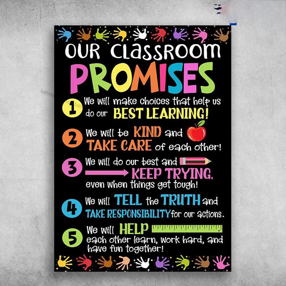 Back To School - Our Classroom Promises, We Will Make Choices That Help Us, Do Our Best Learning Premium Matte posters ( No Framed ) Design & Printed in the USA Matte edge-to-edge print on 200 GSM paper Multiple sizes: 11x17, 16x24 Inch Fingerprint and smudging resistant Shipped in well-protected cardboard tube packaging For indoor use SHIPPING On average, merchandise is produced and shipped from our facility 2-3 business days after purchase. Standard shipping/transit times apply (1-7 days for domestic and 4-15 days for international). Replacement/return policy We stand behind the quality of our products and guarantee our workmanship 100%. Any defects or errors on our part will result in a replacement at no charge. We typically do not accept returns due to user error such as incorrect selection of sizes, designs, colors, etc.