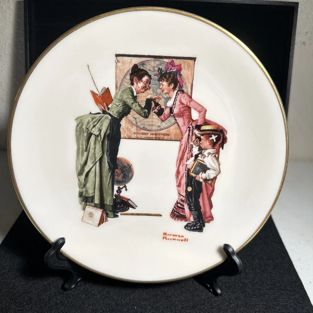 Country/Region of Manufacture: United States Theme: Norman Rockwell Artwork Shape: Round Type: Collector Plate Product Line: The Danbury Mint Norman Rockwell Collection gtin13: does not apply Item Diameter: 8.5 in Time Period Manufactured: 1970-1979 Style: Decorative Item Weight: 12.8 oz Material: Ceramic MPN: n/a Antique: Yes Franchise: Norman Rockwell Collection Character: Mother, Son, Teacher Culture: American Pattern: Mother, Teacher, Student UPC: does not apply Custom Bundle: No Features: Stackable, Limited Edition, Gold Trim Brand: Danbury Mint Era: Late 20th Century (1970-1999) Origin: United States Handmade: Yes Occasion: Back to School Production Technique: Pottery Production Style: Art Pottery Color: Multicolor Vintage: Yes