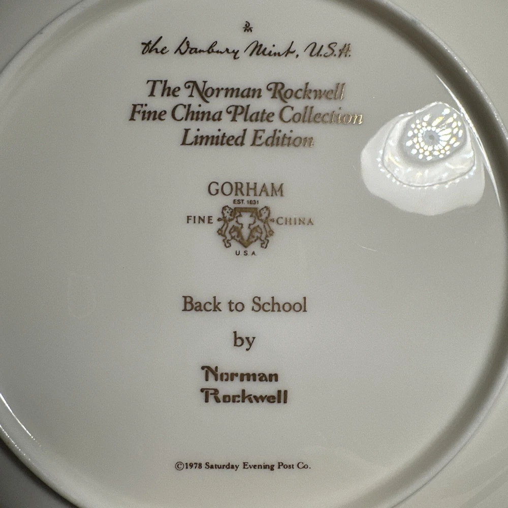 "Back To School" Plate By Norman Rockwell Gorham Fine China Danbury Mint Ltd Ed