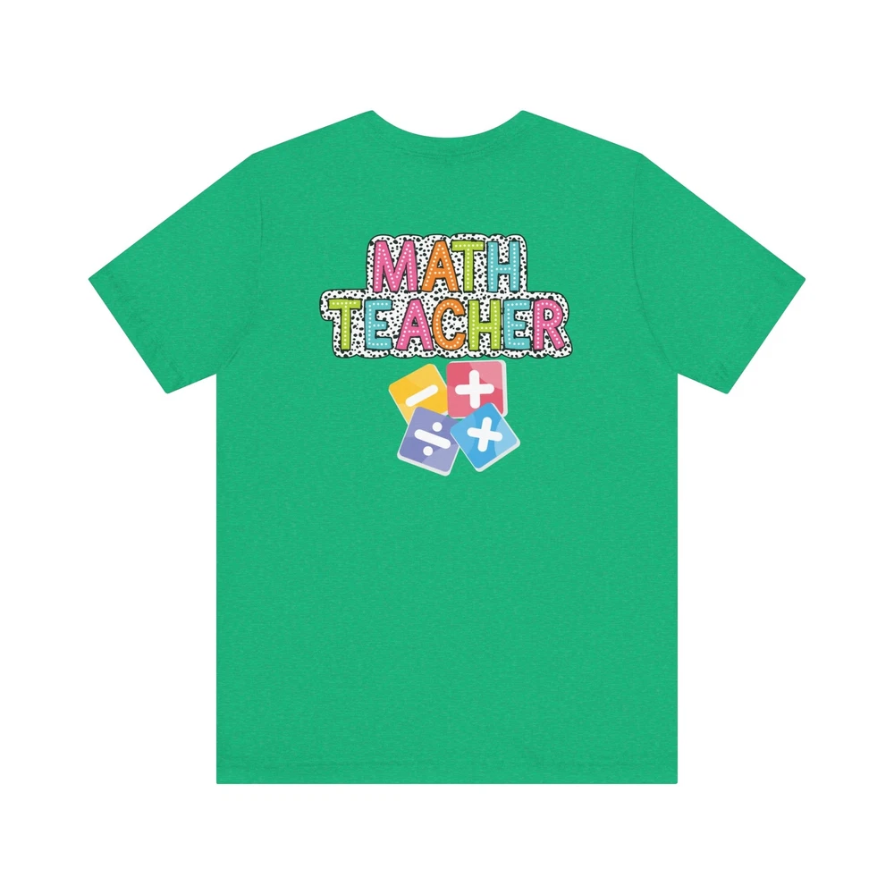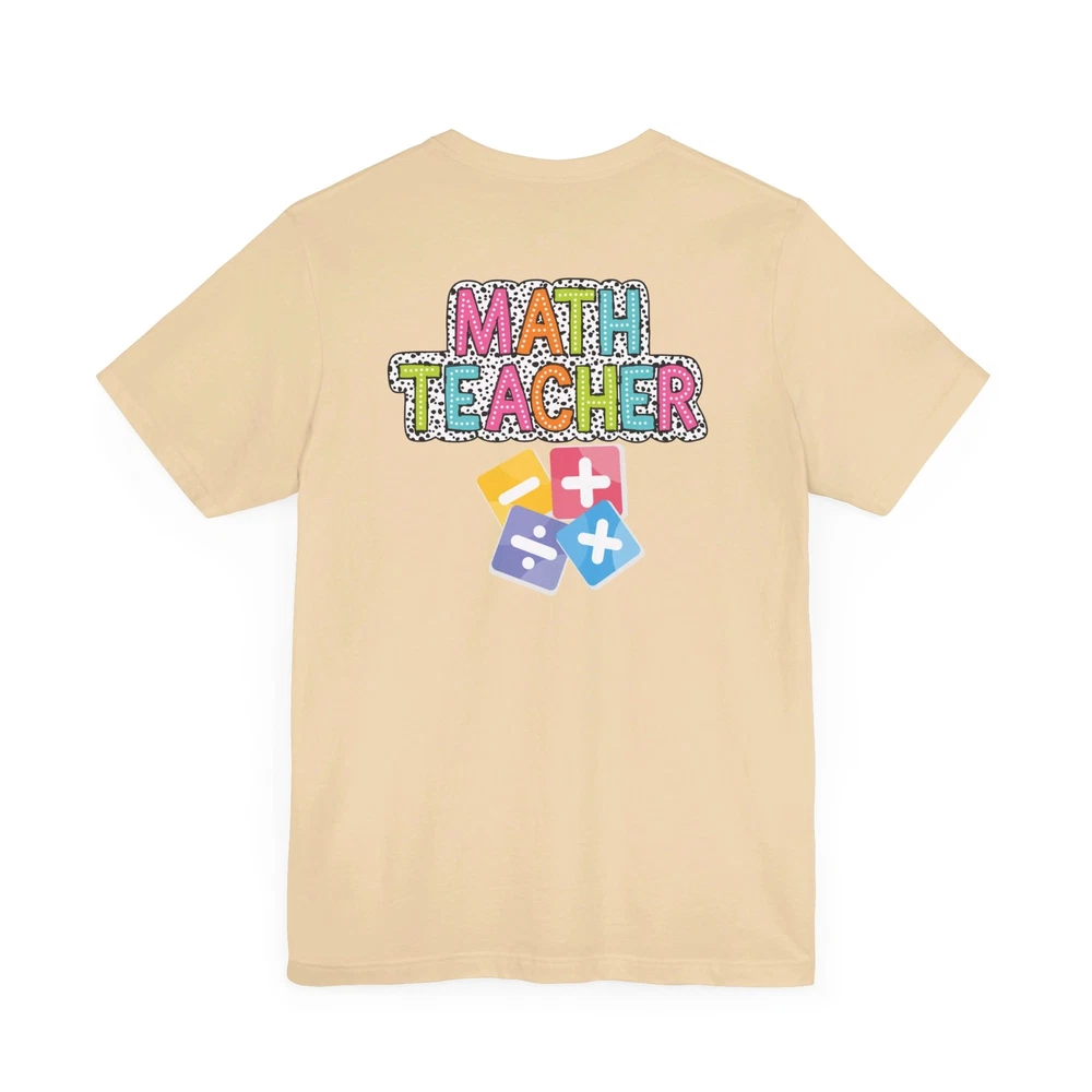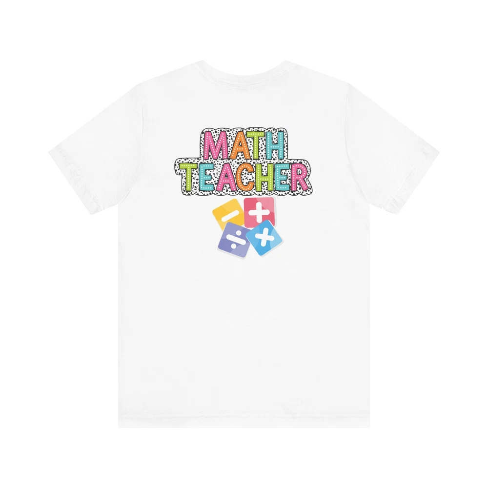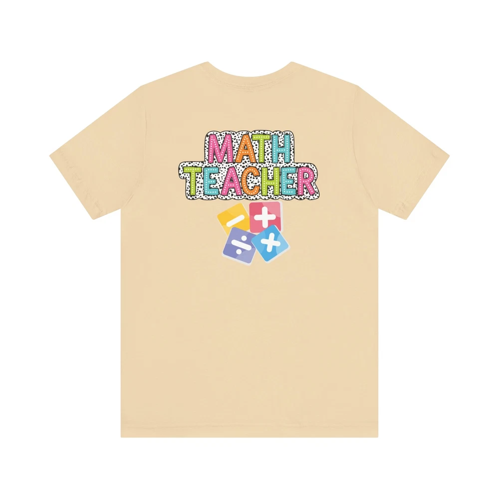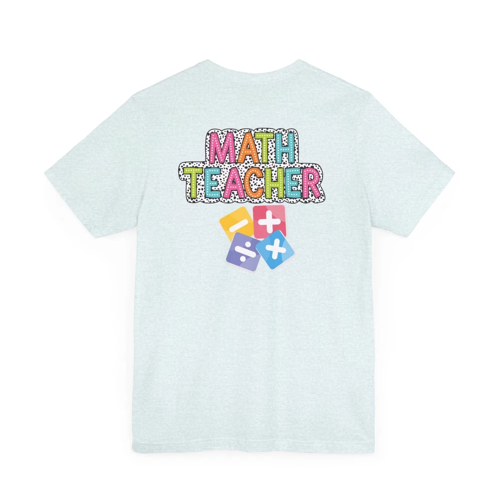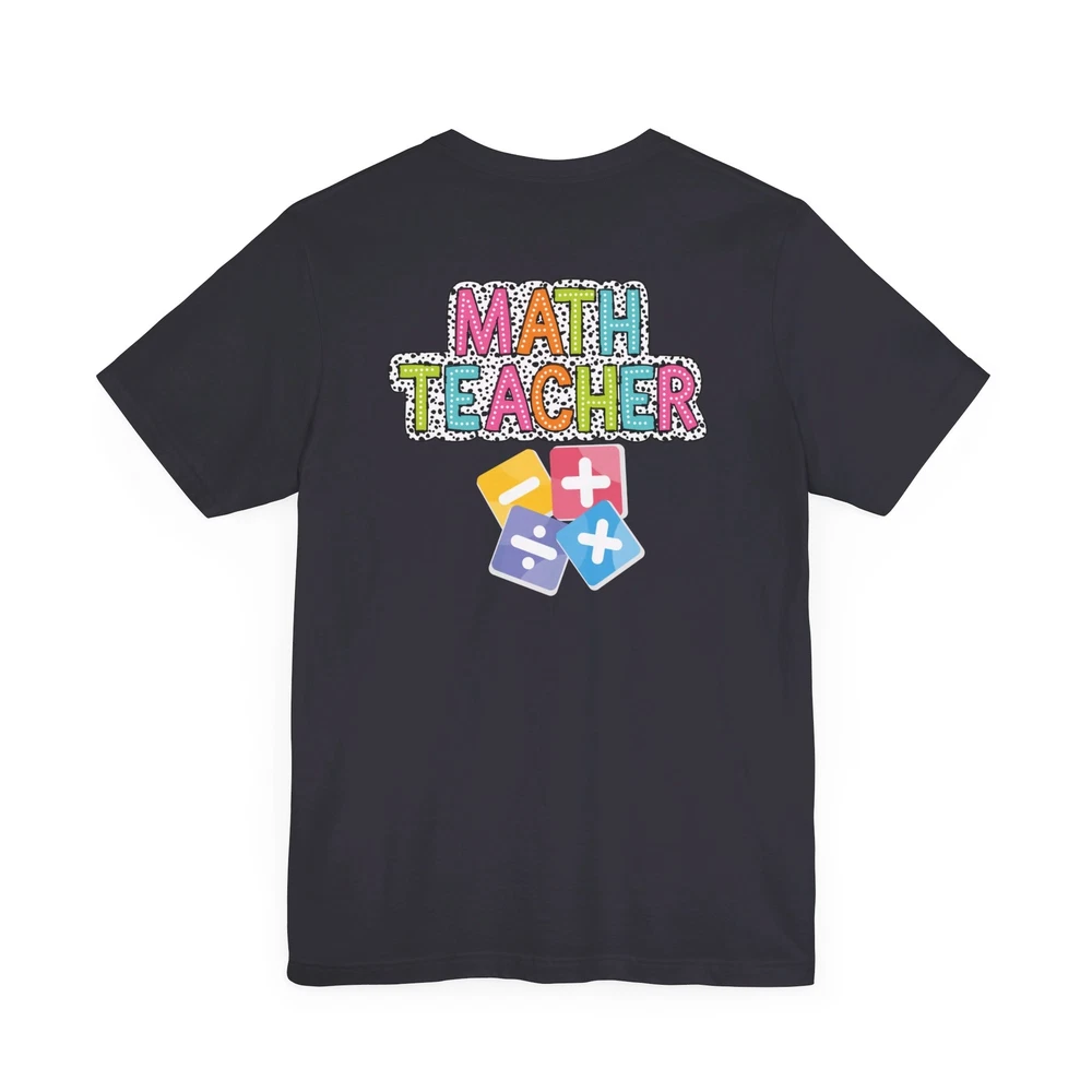 Show appreciation for your favorite math teacher with this stylish Math Teacher Shirt. Perfect as a back-to-school gift or a teacher appreciation present, this tee is a must-have for math lovers and funny teachers alike. Made from high-quality materials, this Mathematics Shirt is both comfortable and durable, making it ideal for everyday wear. Whether you're a math teacher yourself or want to surprise a teacher in your life, this Funny Teacher Shirt is sure to bring a smile to their face. Upgrade your teacher wardrobe with this custom Math Teacher T-shirt and show off your teacher life pride in style. This classic unisex jersey short sleeve tee fits like a well-loved favorite. Soft cotton and quality print make users fall in love with it over and over again. These t-shirts have-ribbed knit collars to bolster shaping. The shoulders are tapered for a better fit over time. Dual side seams hold the garment's shape for longer. .: Made with 100% Airlume combed and ring-spun cotton, a lightweight fabric (4.2 oz/yd² (142 g/m²)) that is easy to layer, breathable. Perfect for active and leisure wear. .: The retail fit that is perfect for casual and semi-formal settings. The crew neckline adds a classic, neat style that's perfect for accessorizing. .: Bella+Canvas manufactures all its products in the US and internationally in humane, no-sweat-shop, sustainable way and is part of the Fair Labor Association as well as Platinum WRAP certified. .: The tear-away label minimizes skin irritations. .: Fabric blends: Ash and Heather Prism colors - 99% Airlume combed and ring-spun cotton, 1% polyester; Heather and Solid Blend colors - 52% cotton, 48% polyester; Athletic Heather and Black Heather - 90% cotton, 10% polyester.
