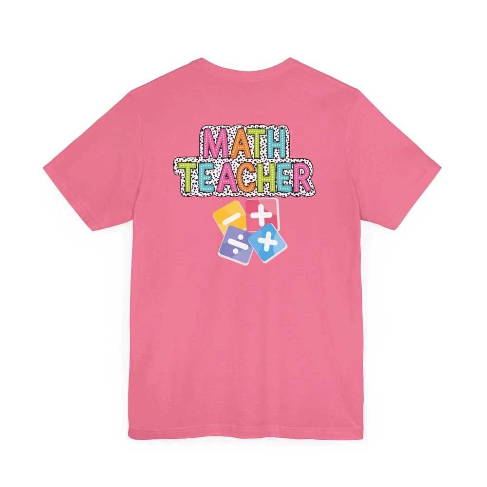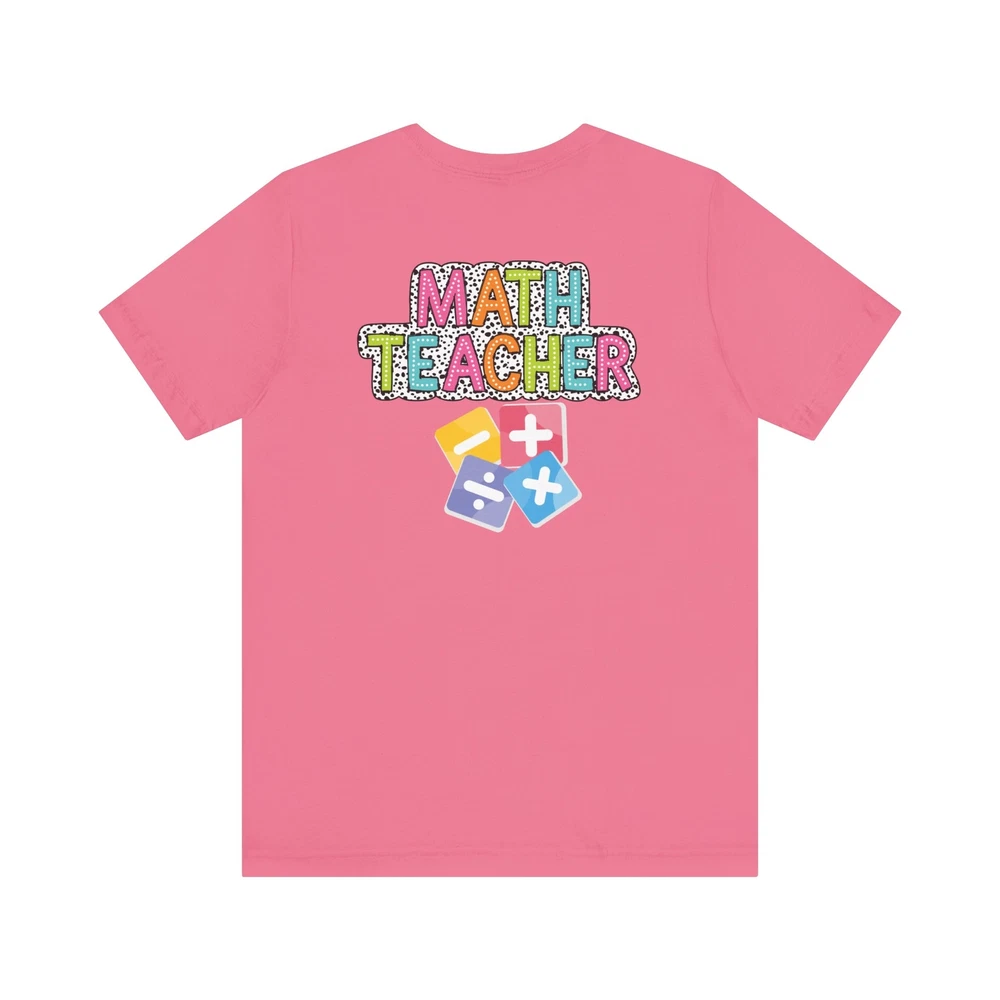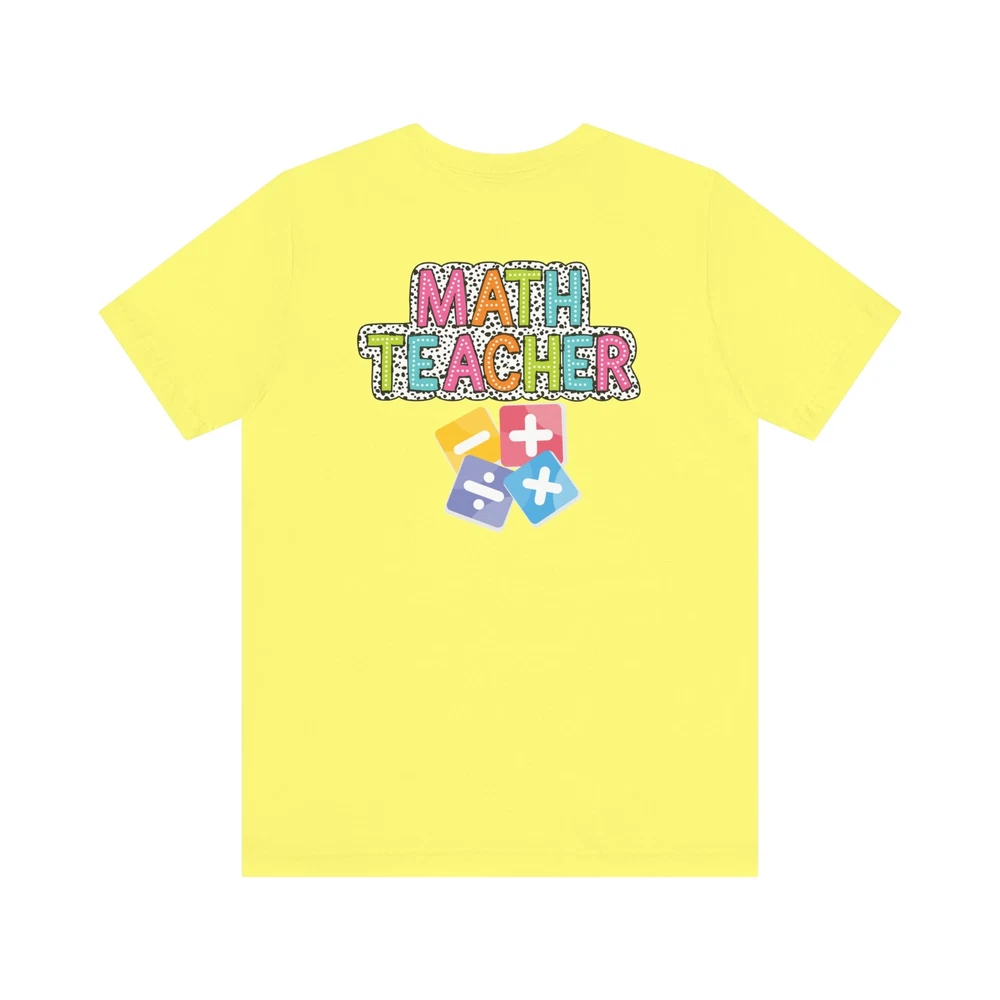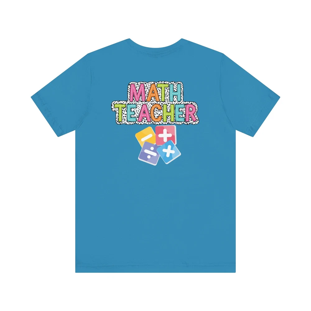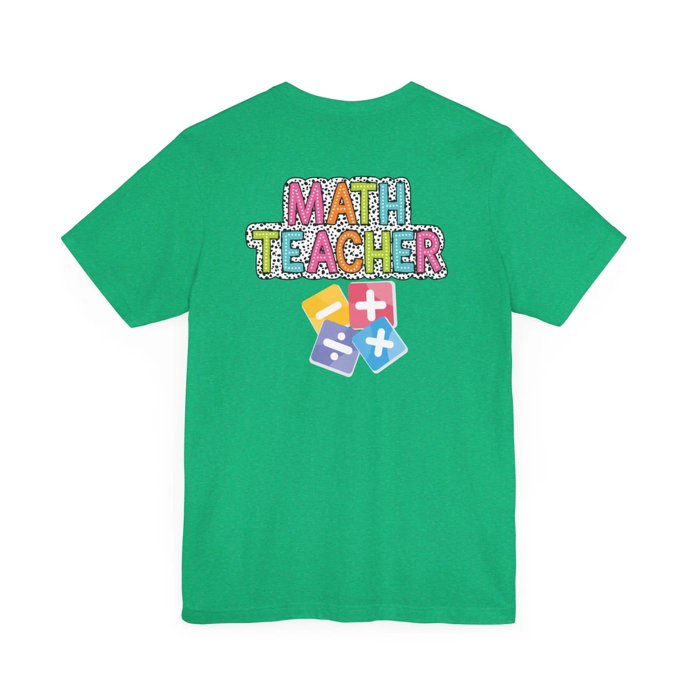 Show appreciation for your favorite math teacher with this stylish Math Teacher Shirt. Perfect as a back-to-school gift or a teacher appreciation present, this tee is a must-have for math lovers and funny teachers alike. Made from high-quality materials, this Mathematics Shirt is both comfortable and durable, making it ideal for everyday wear. Whether you're a math teacher yourself or want to surprise a teacher in your life, this Funny Teacher Shirt is sure to bring a smile to their face. Upgrade your teacher wardrobe with this custom Math Teacher T-shirt and show off your teacher life pride in style. This classic unisex jersey short sleeve tee fits like a well-loved favorite. Soft cotton and quality print make users fall in love with it over and over again. These t-shirts have-ribbed knit collars to bolster shaping. The shoulders are tapered for a better fit over time. Dual side seams hold the garment's shape for longer. .: Made with 100% Airlume combed and ring-spun cotton, a lightweight fabric (4.2 oz/yd² (142 g/m²)) that is easy to layer, breathable. Perfect for active and leisure wear. .: The retail fit that is perfect for casual and semi-formal settings. The crew neckline adds a classic, neat style that's perfect for accessorizing. .: Bella+Canvas manufactures all its products in the US and internationally in humane, no-sweat-shop, sustainable way and is part of the Fair Labor Association as well as Platinum WRAP certified. .: The tear-away label minimizes skin irritations. .: Fabric blends: Ash and Heather Prism colors - 99% Airlume combed and ring-spun cotton, 1% polyester; Heather and Solid Blend colors - 52% cotton, 48% polyester; Athletic Heather and Black Heather - 90% cotton, 10% polyester.