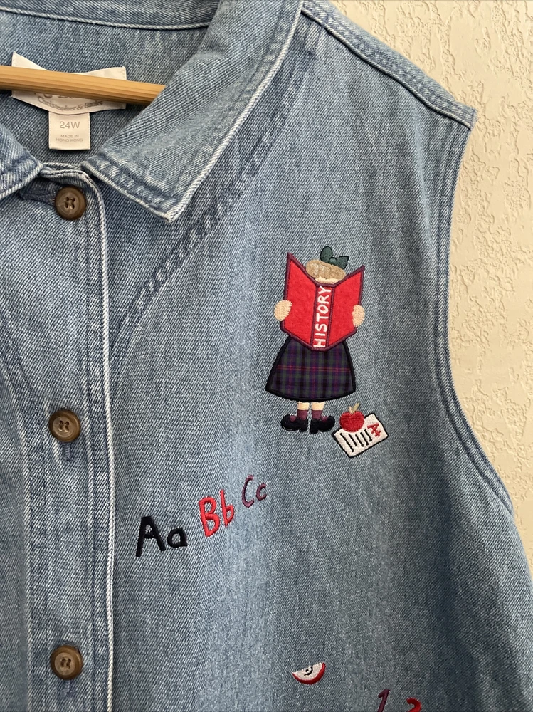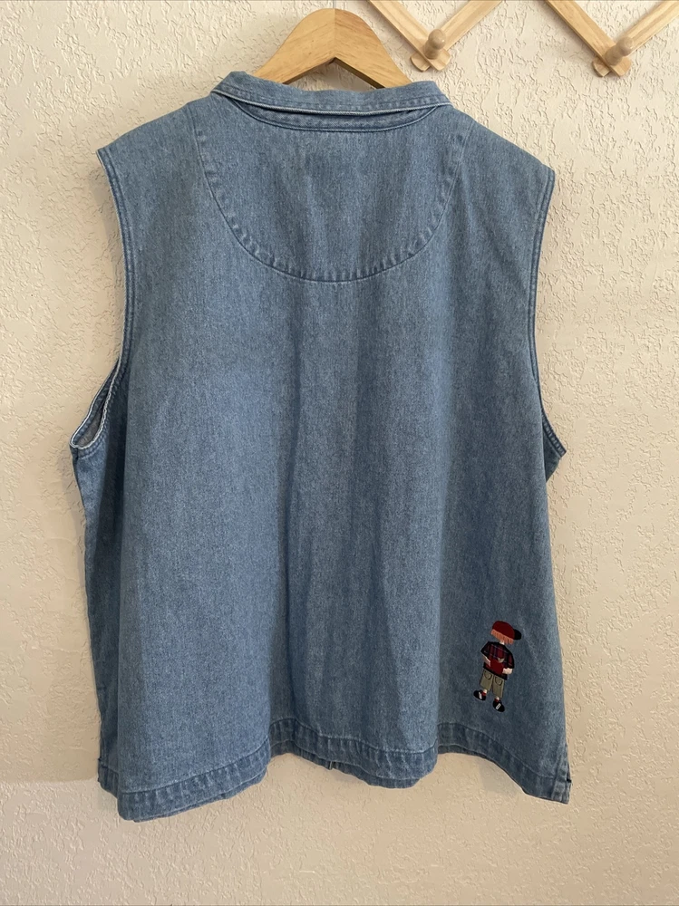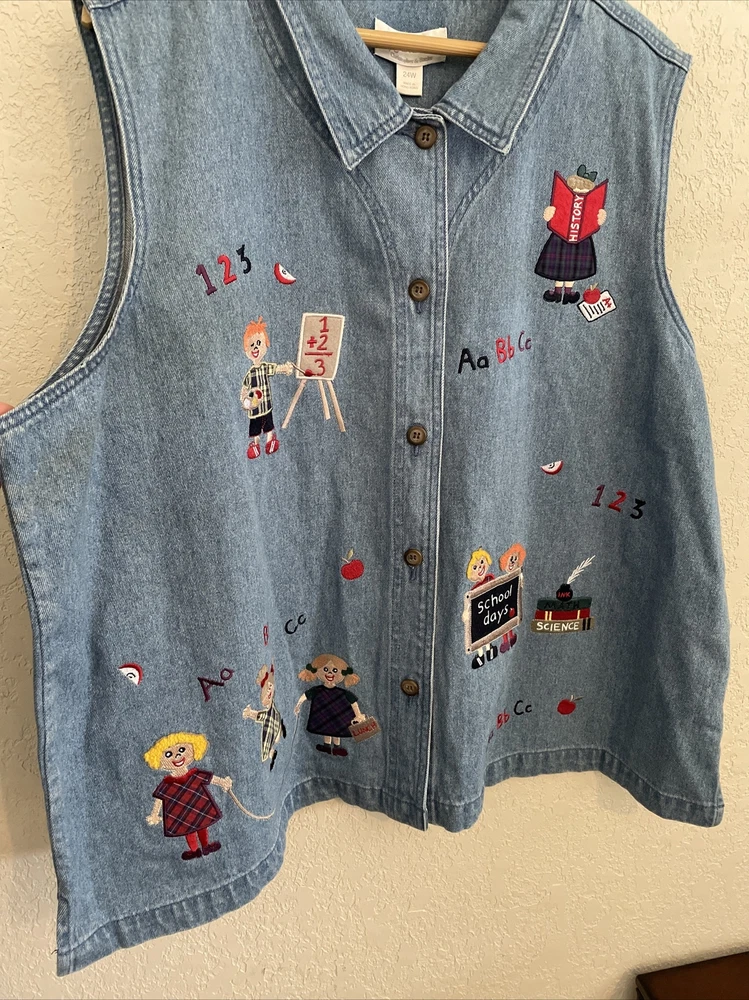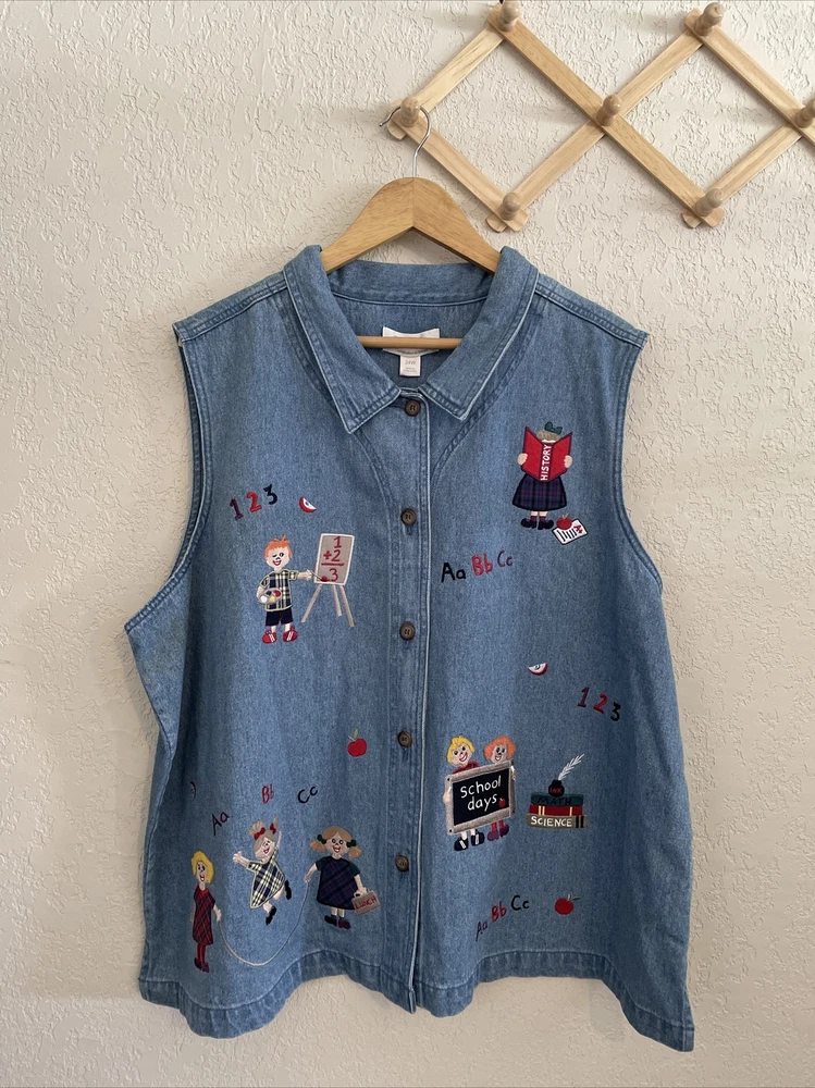 cj banks denim vest school days vintage style 24w. Made in hongkong - minimal signs of wear but no rips still in great condition