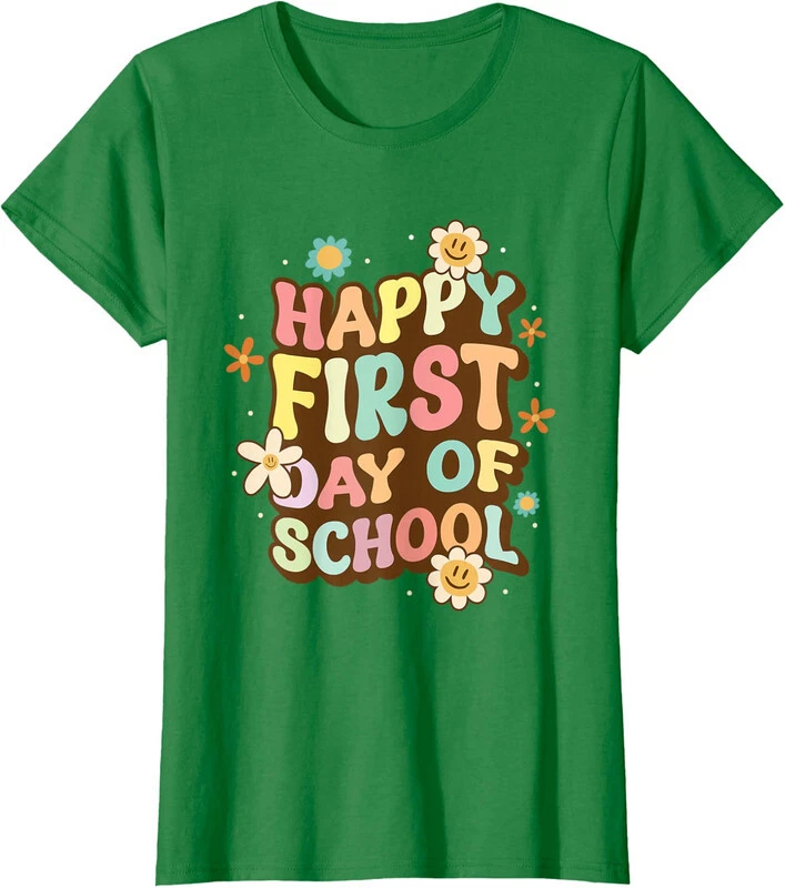 Welcome to Our eBay Shop Fast Shipping Hasslefree Returns Secure Payment Excellent Service Back To School teacher toddler Happy First Day Product Description All of our Ladies t-shirts are brand new and made to order. They are printed in our New York facilities with love and passion. We use various printing methods to ensure you the high quality, long lasting garments you or your loved ones deserve. We carry sizes from Small to 2XL in short sleeve women t-shirts (depending on the design). You can refer to "SPECS & SIZING" to get accurate information regarding the sizes of the garments we use. This design is also available and printed on different types of garments in our store.If you would like this graphic printed on a different type of garment than a short sleeve t-shirt, please make sure to check our store ! If you have any questions regarding this item or any other item we have for sale, do not hesitate to contact us. We answer all messages within 1 business day. SPECS & SIZING SHIRT CARE TIPS Wash inside out with cold water with similar colors using a gentle cycle. Tumble dry low or hang-dry Avoid using bleach and do not dry clean. PAYMENT We accept payment by any of the following methods: PayPal Please pay as soon as possible after winning an auction, as that will allow us to post your item to you sooner! SHIPPING Your order will be dispatched within 2 business days of receiving payment (Monday-Friday) with a tracking number. In the very unlikely event that your item is lost or damaged during post, then WE are responsible and will issue either a full refund or replacement. RETURNS If you are not 100% satisfied with your purchase, you can return the product and get a full refund or exchange the product for another one, be it similar or not. You can return a product for up to 14 days from the date you purchased it. Any product you return must be in the same condition you received it and in the original packaging. Please keep the receipt. Feedback * Your great positive feedback will be greatly welcomed! * If you have any problem when you receive the item, please contact us first, we'll do our best to resolve the problem!:) Copyright © 2022 | All Rights Reserved