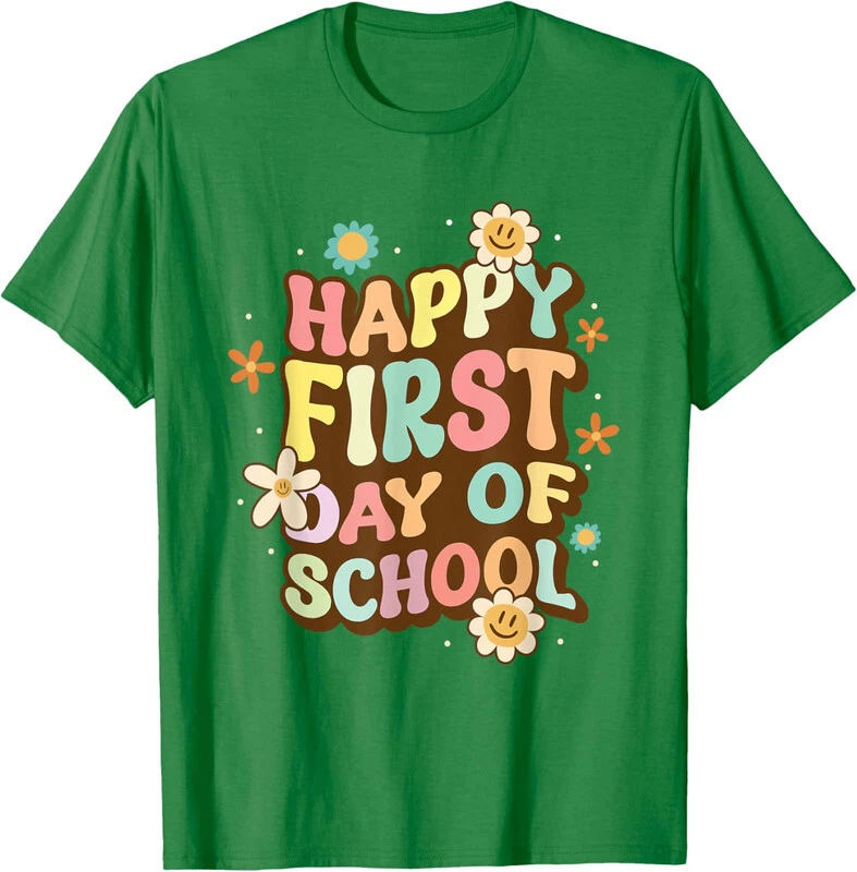 Welcome to Our eBay Shop Fast Shipping Hasslefree Returns Secure Payment Excellent Service Back To School teacher toddler Happy First Day Product Description All of our t-shirts are brand new and made to order. They are printed in our USA facilities with love and passion. We use various printing methods to ensure you the high quality, long lasting garments you or your loved ones deserve. We carry sizes from Youth Small to Adult-5XL in short sleeve t-shirts (depending on the design). You can refer to "SPECS & SIZING" to get accurate information regarding the sizes of the garments we use. If you have any questions regarding this item or any other item we have for sale, do not hesitate to contact us. We answer all messages within 1 business day. SPECS & SIZING SHIRT CARE TIPS Wash inside out with cold water with similar colors using a gentle cycle. Tumble dry low or hang-dry Avoid using bleach and do not dry clean. PAYMENT We accept payment by any of the following methods: PayPal Please pay as soon as possible after winning an auction, as that will allow us to post your item to you sooner! SHIPPING Your order will be dispatched within 2 business days of receiving payment (Monday-Friday) with a tracking number. In the very unlikely event that your item is lost or damaged during post, then WE are responsible and will issue either a full refund or replacement. RETURNS If you are not 100% satisfied with your purchase, you can return the product and get a full refund or exchange the product for another one, be it similar or not. You can return a product for up to 14 days from the date you purchased it. Any product you return must be in the same condition you received it and in the original packaging. Please keep the receipt. Feedback * Your great positive feedback will be greatly welcomed! * If you have any problem when you receive the item, please contact us first, we'll do our best to resolve the problem!:) Copyright © 2022 | All Rights Reserved
