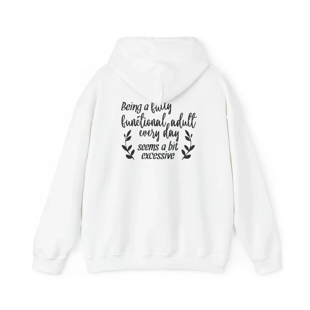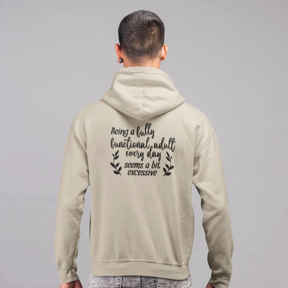 This Back printed humorous text Hoodie is a must-have for any fashion-forward individual. Made from high-quality materials, this hoodie offers both comfort and style. The back features a humorous text design, perfect for showcasing your unique sense of humor. Stay cozy and fashionable with this must-have hoodie. Overview; This heavy blend hooded sweatshirt is relaxation itself. Made with a thick blend of cotton and polyester, it feels plush, soft and warm, a perfect choice for any cold day. In the front, the spacious kangaroo pocket adds daily practicality while the hood's drawstring is the same color as the base sweater for extra style points. Fabric: Made with a medium-heavy fabric (8.0 oz/yd² (271 g/m²)) that consists of 50% cotton and 50% polyester for that cozy feel and warmth you need in a hoodie. Fit; The classic fit along with the pouch pocket and the tear-away label make for a highly comfortable, scratch-free wearing experience. The color-matched draw cord and the double-lined hood add a stylish flair and durability that tie everything together. Fabric blends: Heather Sport colors - 60% polyester, 40% cotton.