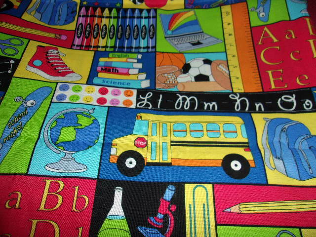 Fabric Traditions Back to School Patch Fabric 100% Cotton Sold by The 1/2 Yard. 100 % Cotton. 44 Inches Wide. Please see the many photo's for a close up view. This New fabric is from our Pet Free/Smoke Free Environment. I.D. # AU-7523
