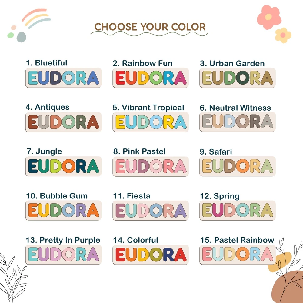 Back to School, Activities for Toddlers Personalized Name Puzzle - Unique Godchild Gifts Baby Name Puzzle for Kids Back To School Gifts ★ A Great Educational Toy, Super Cute Gift Option ★ This Personalized Wooden Name Puzzle is an ideal Gift for babies and Toddlers. ★ It is made of natural birch Plywood and Painted with water-based, certified, Kids-safe Paint. With its rounded edges and corners, it is absolutely safe for Kids. ★ The letters are raised from the wood for easy grasping. The capital letters are large enough for Kids to not swallow them. You can choose your main element(s) from the Pictures and Pick a color scheme of your choice. ★ This Puzzle is Perfect for numerous occasions, such as Christmas, Birthday, Thanksgiving, Baby Shower, and Christening (Baptism). ★ You can also add a special engraving message on the back side (optional).This Baby Puzzle helps to increase sensory and motor skills and is the Perfect Montessori-inspired toy. ★ This Personalized Name Puzzle is a great way to help your Toddlers learn their letters, recognize colors and develop their sensory and motor skills. This Wooden Puzzle is made up of separate letter Pieces, each of which can be Customized with a variety of fun and colorful elements, from Animals and Princesses to bears and more. ★ The Puzzle board is made of Plywood and water-based ink. Water-based ink is completely safe for children and environmentally friendly. ★ The engraved message on the back is FREE will make this Kids Name Puzzle a more Personalized heirloom to be treasured for a lifetime! ★ Dimensions and Pieces - The Puzzle board has a height of 3" - 9", the length depends on the number of letters and usually from 12,5" to 27") . - The Puzzle board length depends on the number of letters you choose and usually ranges from: Average Letters, Shapes and Numbers Height : 6-8 cm (2.36 - 3.14 inches) ★ Shipping Be sure that your puzzle will come to you very well wrapped and packaged. - Order processing time: 3-5 business days (maximum) - Shipping time: USA: 8 - 10 business days (maximum) UK: 10 - 12 business days (maximum) AU: 10 - 12 business days (maximum) ★ Benefits Of This Puzzle - Supports kid’s motor skills - Teaches balance and coordination - Supports spatial intelligence development - Increases ability to focus - Self-confidence: Increases self-confidence - Problem solving ability: Gains practicality in producing solutions - Eliminates attention deficit - Improves visual memory - Happiness: The child playing with the puzzle enjoys it and becomes happy - Gets familiar with the basics of daily usage shapes - Recognizes name and developing spell - Discovers potentials and world - Increases kid’s curiosity - Much more better instead of focusing to a digital screen ★ High Safety – Greenguard Certificate When producing our high quality puzzles, safety is a high priority for us, as well as design and instruction. For this reason, puzzle corners are oval, not pointed. The pieces on the puzzle do not have sharp or any surface that will harm your child. We're also the only store on Etsy that uses water-based, non-toxic, Greenguard-certified paints. ★ Guarantee - Unless there is a situation caused by you, such as typing the delivery address incorrectly, in all other conditions, all errors and damages are completely under our %100 guarantee. One of the most common problems with orders is wrongly written addresses. Please check carefully when writing your address. - We pack the puzzles very well to avoid any damage to the product during the shipping phase. However, If there is damage in the shipping process or an mistake for any reason, we will definitely send a new puzzle as fast as possible without extra charge. ★ Safe Usage Instructions and Fragrance - Try not to leave children under 0-36 months alone with puzzles. Thin and long items such as the letter "I" (if you have them in your puzzle) can be dangerous for children. They may try to swallow. - Our puzzles may have a wood burning smell when they first reach you. This scent usually lasts up to 1 week. It does not have any harmful or allergenic properties. - When you receive your puzzle, it is recommended to gently wipe the side black parts of the board and the side black parts of the pieces with a very slightly damp cloth or squeezing a little cologne (without wetting the cloth too much). Please do not wipe the upper parts (painted parts) of the parts. 👉 NOTE: This Wooden Name Puzzle is made as safe as it can be 💯. However we recommend adult suơervise your Baby during play time!