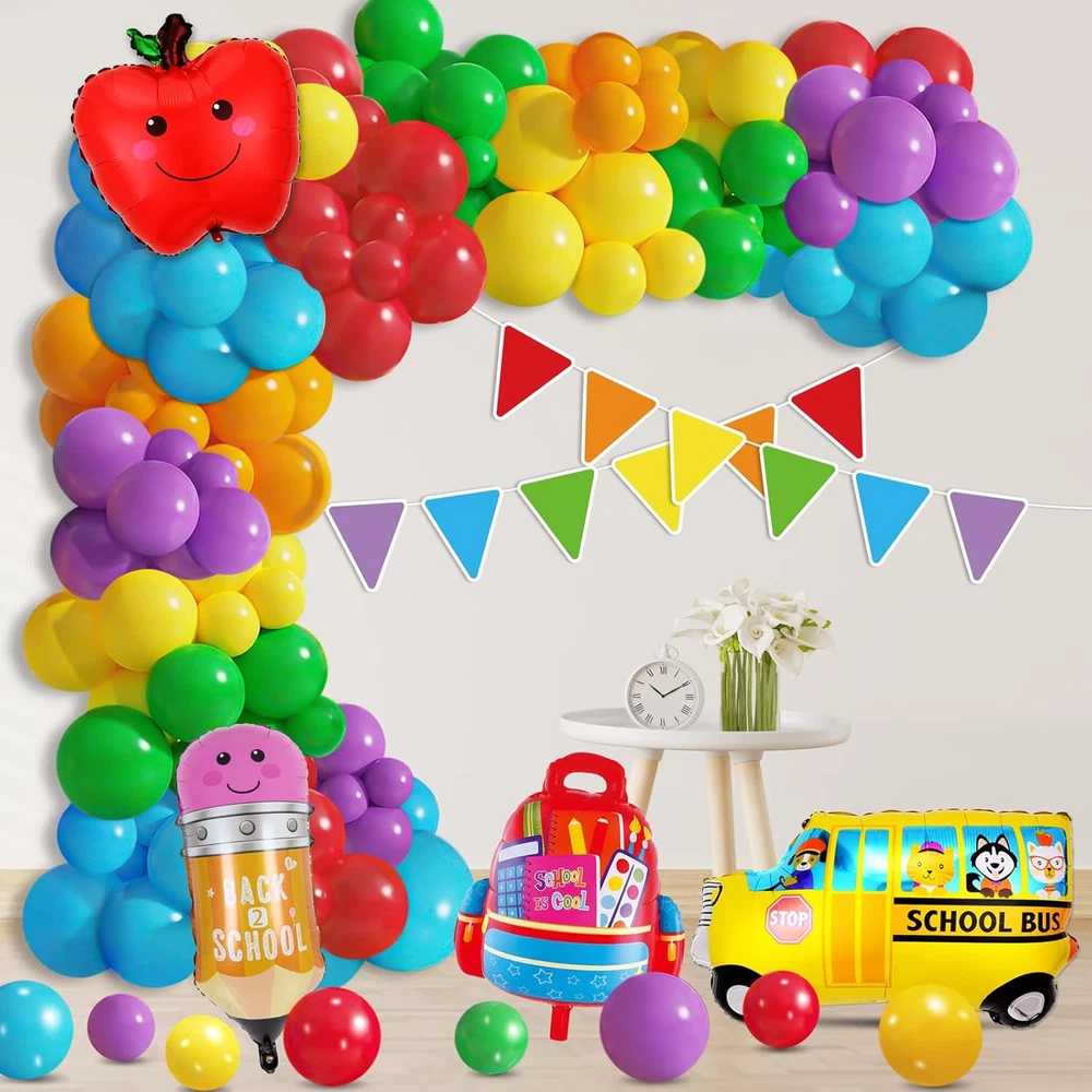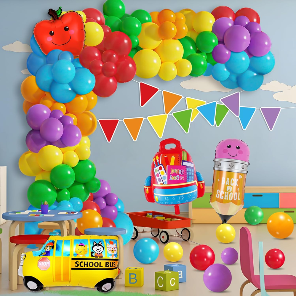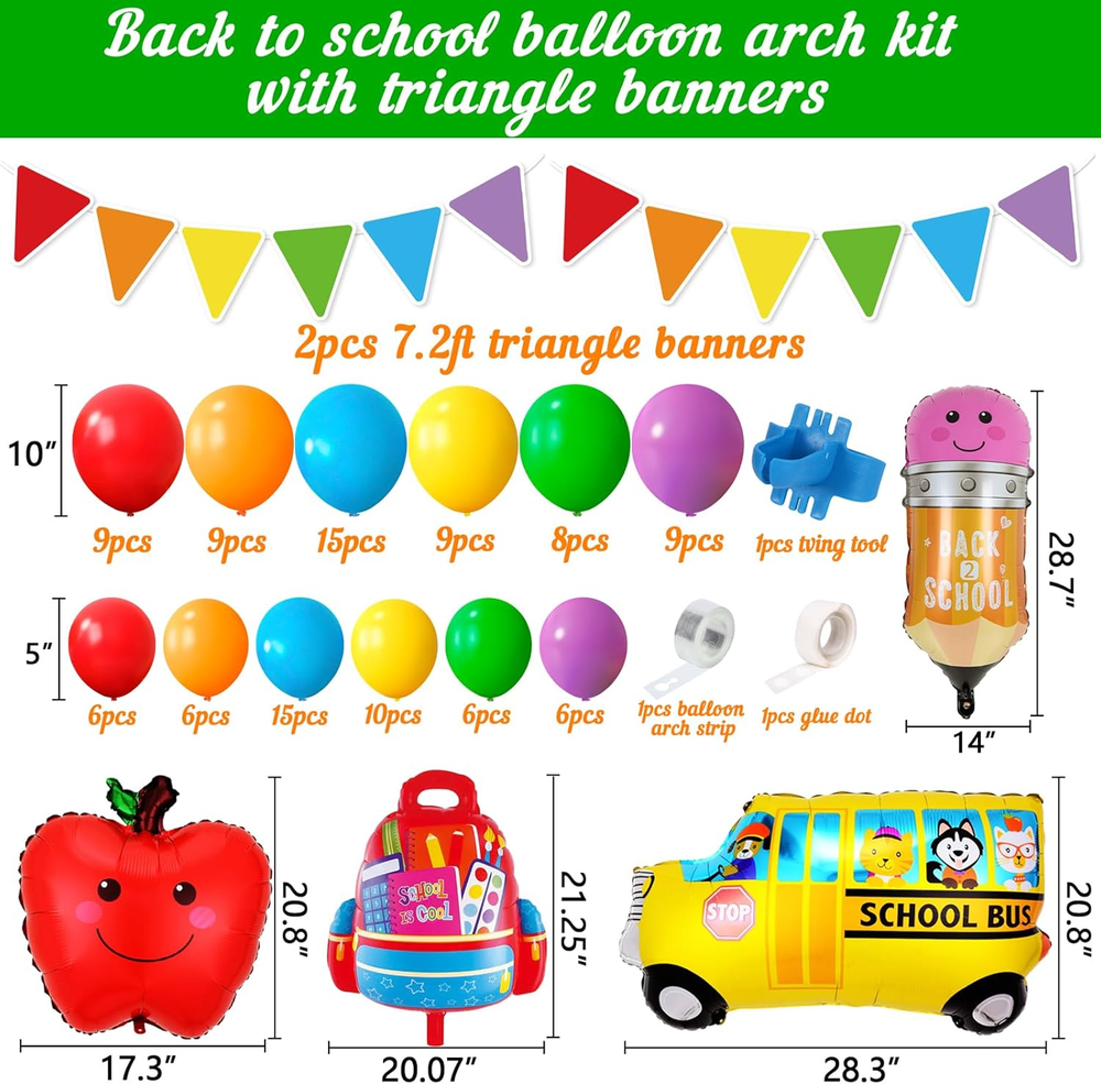 Store New Arrivals Add to Favorite View Feedback Contact Back to School Balloons Garland Arch Kit Decorations - Welcome First Day of School Triangle Banner with Bus/Schoolbag/Pencil Foil Balloon for Party Decor Supplies Description Item model number Moon Boat-back to school-001 Color Multicolor Product Dimensions 1"L x 0.99"W Material Paper Fabric Type Latex Item Weight 10.5 ounces Theme back to school Brand Moon Boat Recommended Uses For Product Party Occasion back to school Special Feature Lightweight Specific Uses For Product Indoor Manufacturer Moon Boat Back to school decorations includes - 109pcs colorful latex balloons(6 different colors)+ 4pcs foil balloons with school-theme design+ 2pcs colorful banners + 1pcs balloons arch strip + 1pcs balloon tying tool + 1pcs glue dot. Material & Size - Latex balloons are vary in size from 5" to 18 ". The pencil balloons approx 14" x 28.7'', The apple balloons approx 20.8" x 17.3''. The schoolbag balloons approx 21.25" x 20''.The school bus balloons approx 20.8" x 28.3''. The balloon strip is made of plastic and the triangle banners garland is made of paper.Great for football party decorations. How to make a back to school balloon balloons arch - 1. Use the pump(not included) to inflate balloons in different colors and sizes,then use the tying tool to tie them. 2. Insert them into the hole of the balloon strip. 3. Stick the extra balloons with sticky dots to make the balloon arch look fuller.4.stick the foil balloons,then the balloon arch is finished. Instruction is included. Pre-assembled colorful triangle banner - You can decorate it to your back to school balloons garland,wall,yard or anywhere you like to make your child the first day of school more special. Suitable for many occasions - The back to school balloon garland kit can be used as welcome back to school party decorations,first day of school decorations,birthday party decorations,etc.It will add more festival atmosphere for your party. Product Description ABOUT US We offer the best prices around on high quality products. Our E-store includes media such as books, movies, music and games while offering electronics, toys, sporting apparel, clothing, tools, general home, garden items and more. SHIPPING We are always working hard to ensure your package arrives as soon as possible. Please understand that some factors like weather, high postal traffic, and the performance of shipping companies are outside of our control. We offer free shipping to the lower 48 states and ship within 2 business days of payment, usually sooner. We do not accept P.O. Boxes. Please provide a physical address. RETURNS We offer a 30-Day Return Policy on items which you are not completely satisfied with. You have the option for a full-refund or an exchange of the item. No returns are available on items shipped outside of the USA. PAYMENT We accept PayPal. CONTACT US This page content is yet to come Please ad us to your favorite seller and visit again later Thank You CUSTOMER SATISFACTION We try our very best to make sure every customer is completely satisfied. If there's a problem, message us! We're happy to help.
