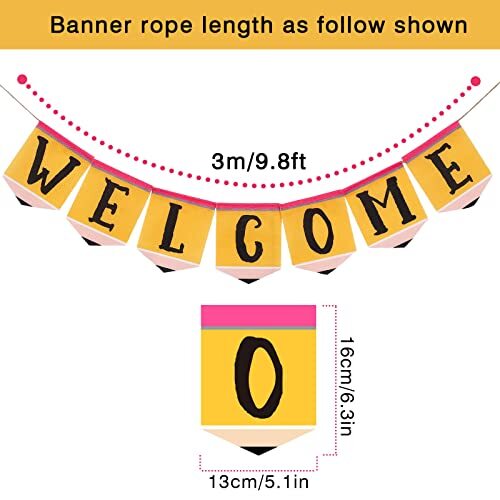Return Policy Fast Delivery Trusted seller Back to School Banner Pencil Themed Welcome School Hanging Party Decoration Pre-Assembled First Day of School Bunting Garland for Classroom Teacher Office School Activities Product Description Pre-assembled polyester welcome back to school banner requires no DIY for easy hanging Cute pencil banner design adds fun atmosp for back to school days Durable 3 meter long banner enhances classroom, school decor for school events Lightweight foldable polyester material is easy to store and reusable Perfect for indoor and outdoor decoration like gardens, walls, windows for school parties Shipping Returns Payment Shipping Shipping is FREE to all addresses other than APO/PO boxes in the lower 48 states. All our stock ships from US-based warehouses. Shipped via USPS or UPS (depending on location and package weight) Unless stated otherwise, all orders will ship within 24-72 hours of your payment being processed. Check our feedback to see the great reviews of FAST shipping we offer. Returns Seller does not accept returns Payment We currently accept payment via eBay managed payments only. Once payment is cleared, we will dispatch your shipment within 1-3 business days. Please refer to the "Shipping" tab for more information regarding shipping speed to your destination.