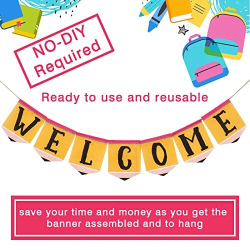 Welcome Back Banners Back to School Decorations for Classroom - 2 Strings, NO