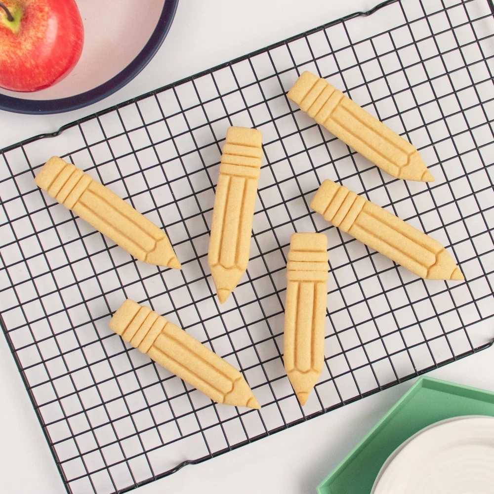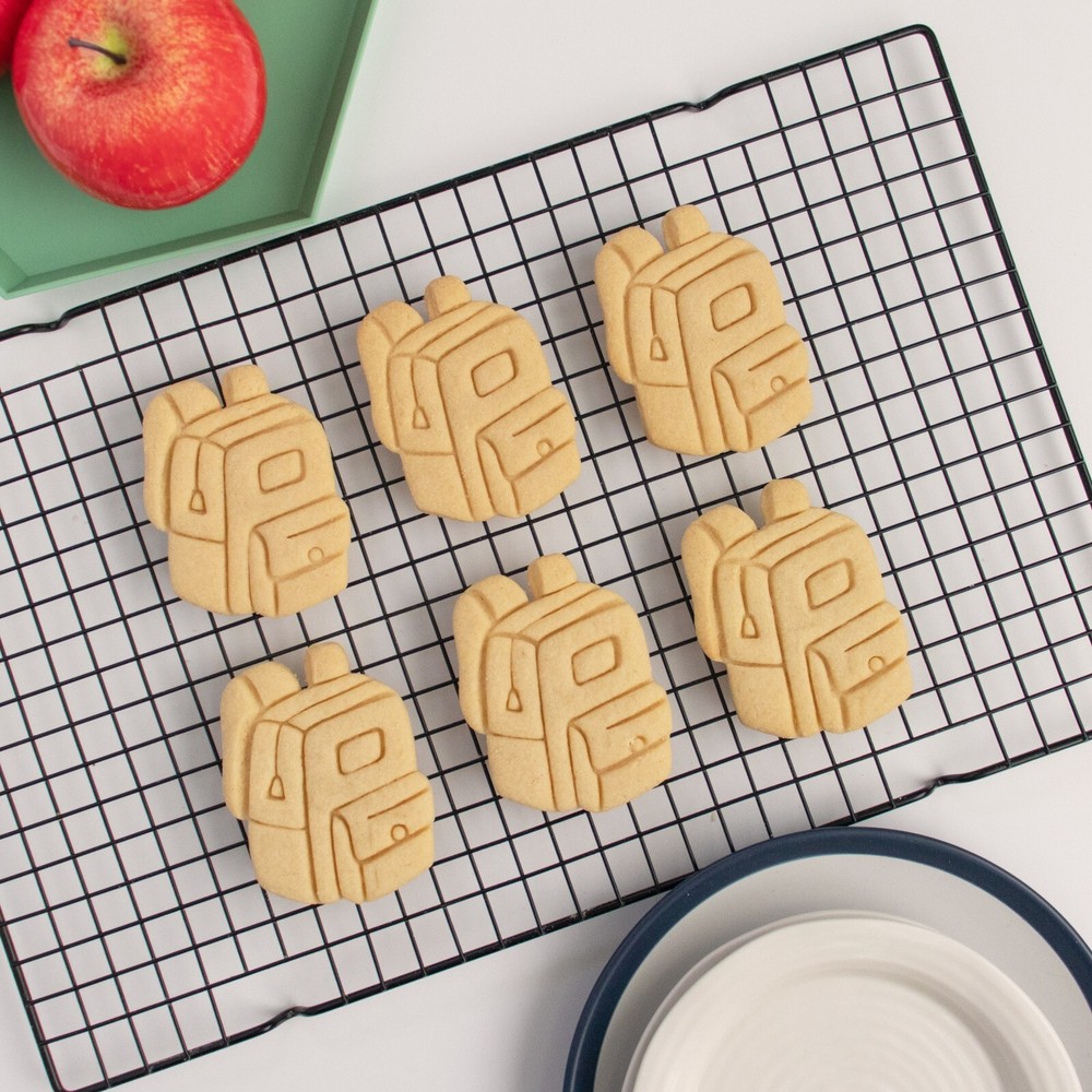 SIZE Backpack cookie cutter: 6.9 cm by 9 cm (2.7" by 3.5") Book cookie cutter: 10.3 cm by 6.6 cm (4" by 2.5") Pencil cookie cutter: 3.1 cm by 12.5 cm (1.2" by 4.9") 5mm thickness of dough will be perfect (~1/5 inch) ESSENTIAL TIPS: ♥ For easy release of dough, remember to coat the cutter with icing sugar/ flour before cutting ♥ Use non-raising dough recipe to get the best looking cookie! Washing recommendations: Handwash with lukewarm soapy water and a mini brush to remove remnants. Dishwasher safe. Food contact safe.